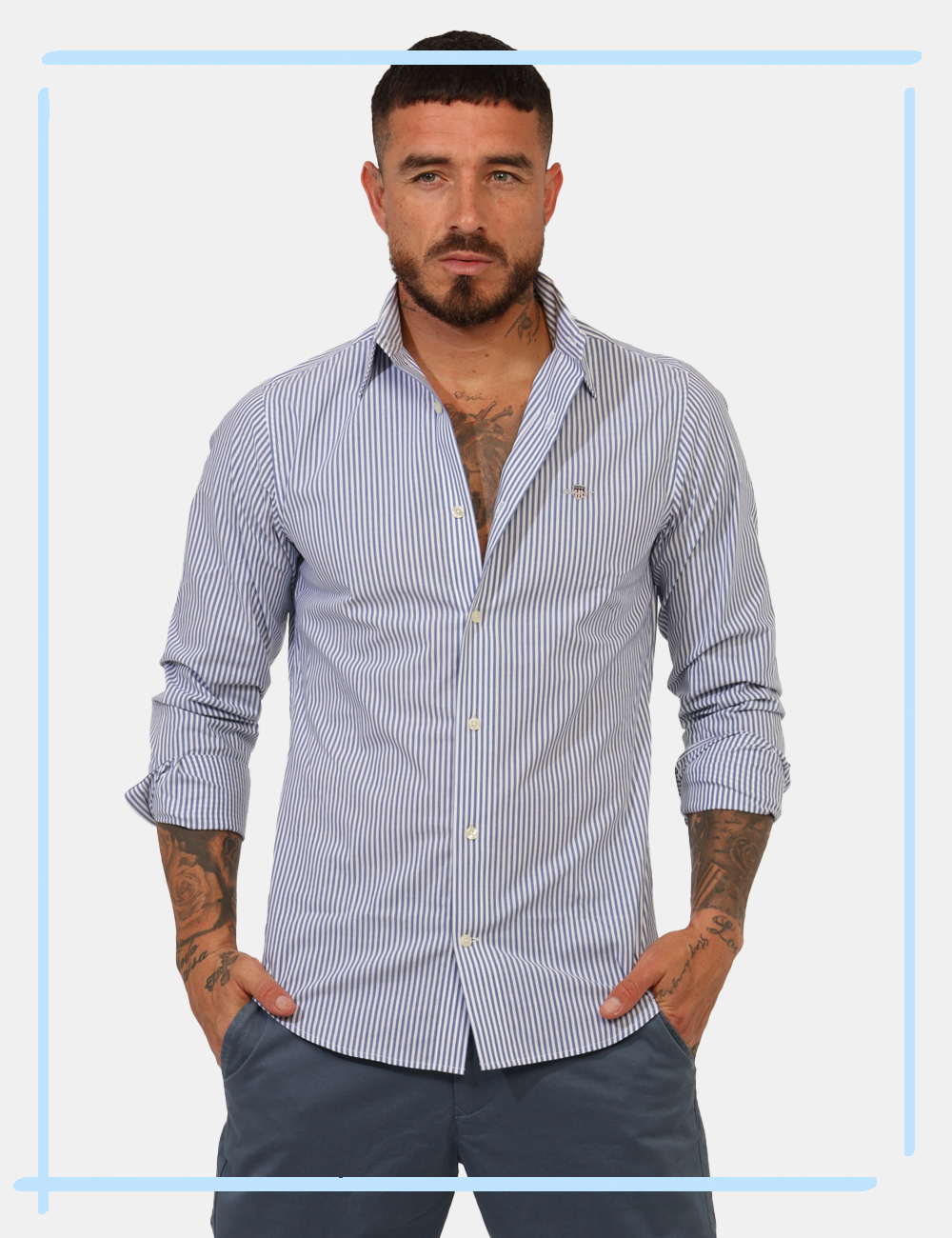 Camicia classica in total azzurro con piccoli disegnini bianchi. La vestibilità è morbida e pratica grazie a bottoni ad asola sul fronte e sui polsini. La camicia è adatta per occasioni casual/eleganti e facilmente combinabile. Indossala per essere impeccabile.