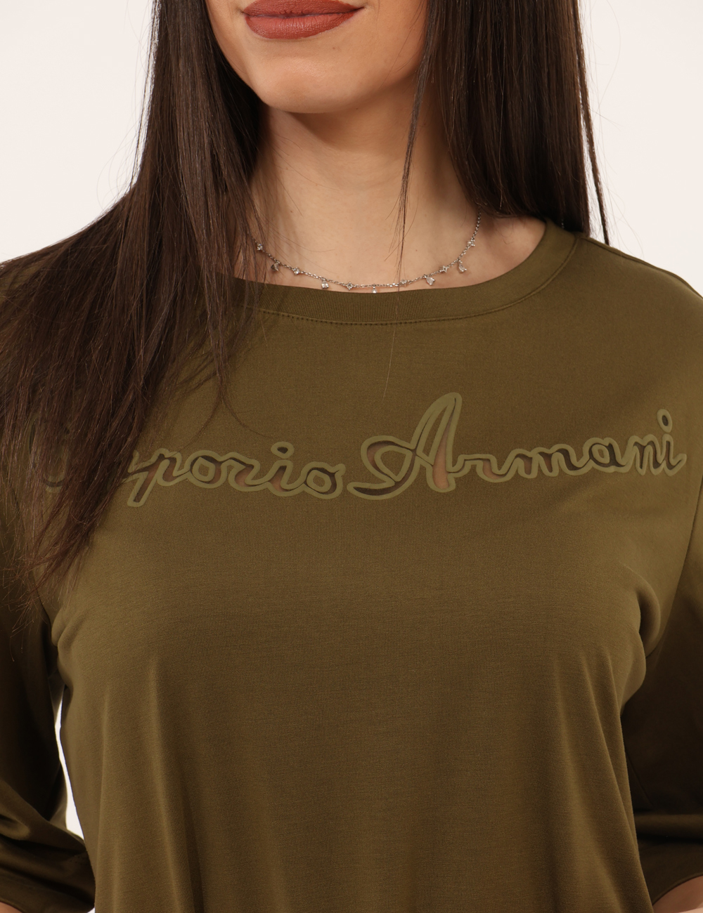 Realizzato in 80% viscosa, 12% poliestere e 8% lycra, offre una vestibilità fluida e confortevole, valorizzando la silhouette con naturalezza. Il tessuto leggero e morbido segue i movimenti del corpo, rendendolo ideale per le giornate più calde. La vestibilità è regolare: la modella è alta 165 cm e indossa la taglia S. Si tratta di un pezzo unico di campionario, selezionato per garantire esclusività e qualità firmata Armani.