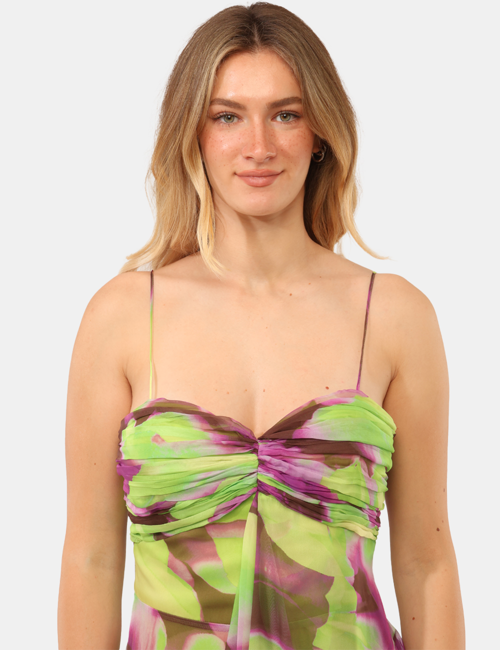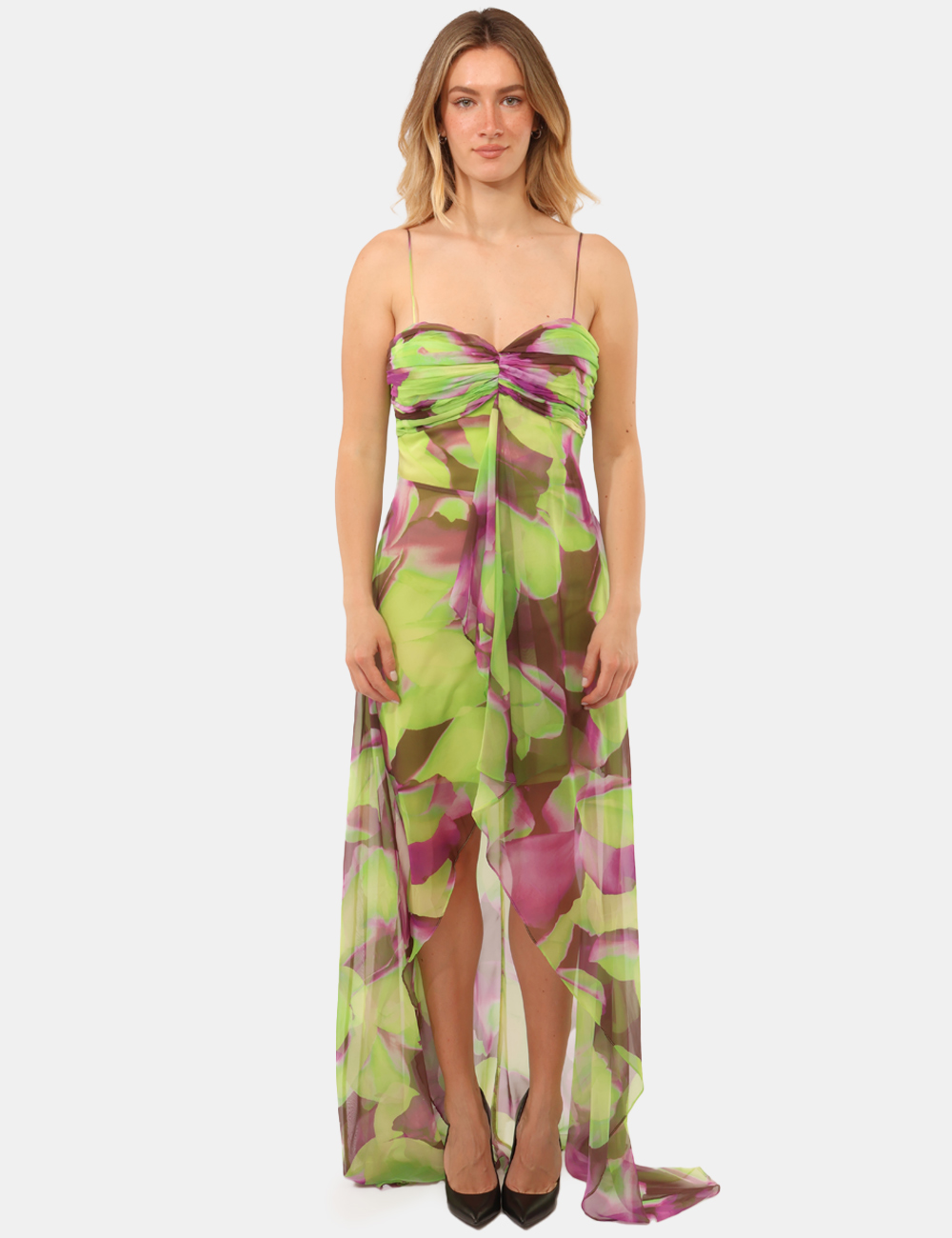 Realizzato in 100% poliestere, questo abito da donna adatto alla primavera estate è leggero e confortevole, perfetto per le giornate più calde e le serate all’aperto. La vestibilità regolare segue le linee del corpo in modo armonioso, mentre il design con spalline sottili, taglio corto davanti e lungo dietro e coppe imbottite crea movimento e slancia la silhouette, offrendo un effetto elegante e dinamico.