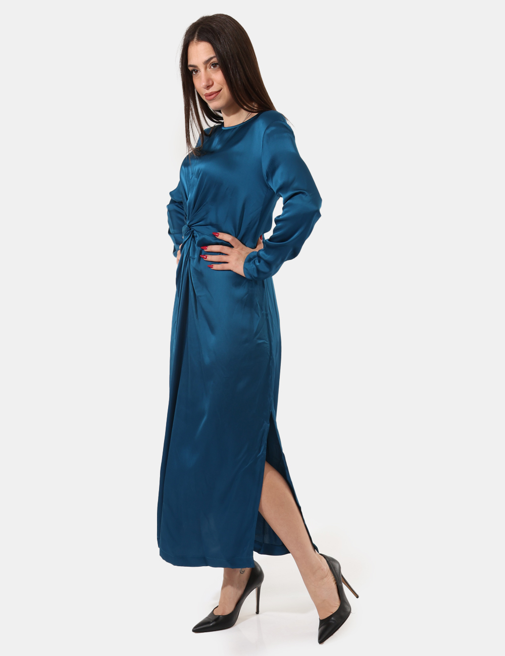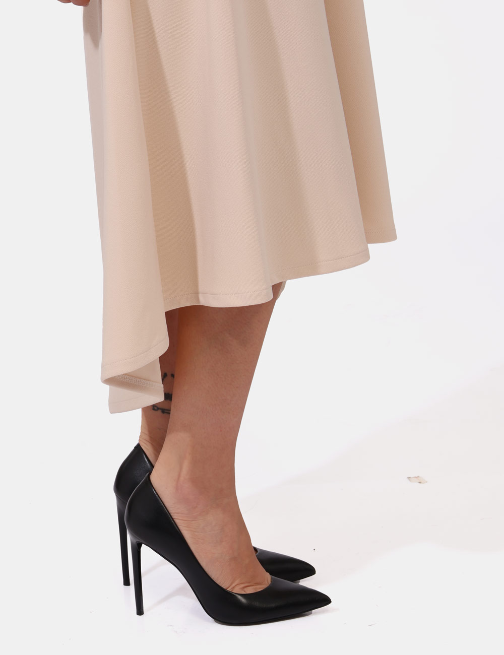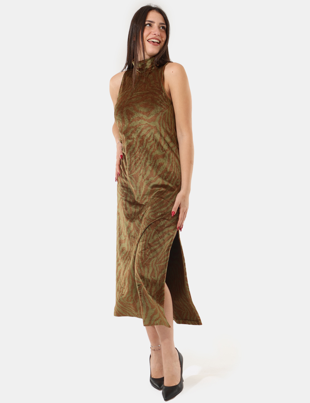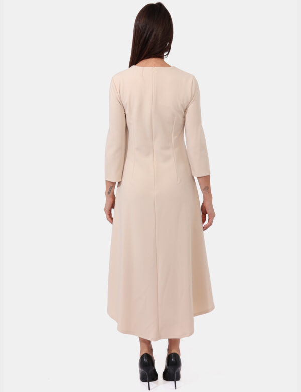 Vestito lungo in total beige con trama semilavorata e girocollo classico. La vestibilità è pratica e regolare grazie a zip sul retro. Il vestito è adatto per occasioni casual e facilmente combinabile. Praticità e stile in un solo capo.