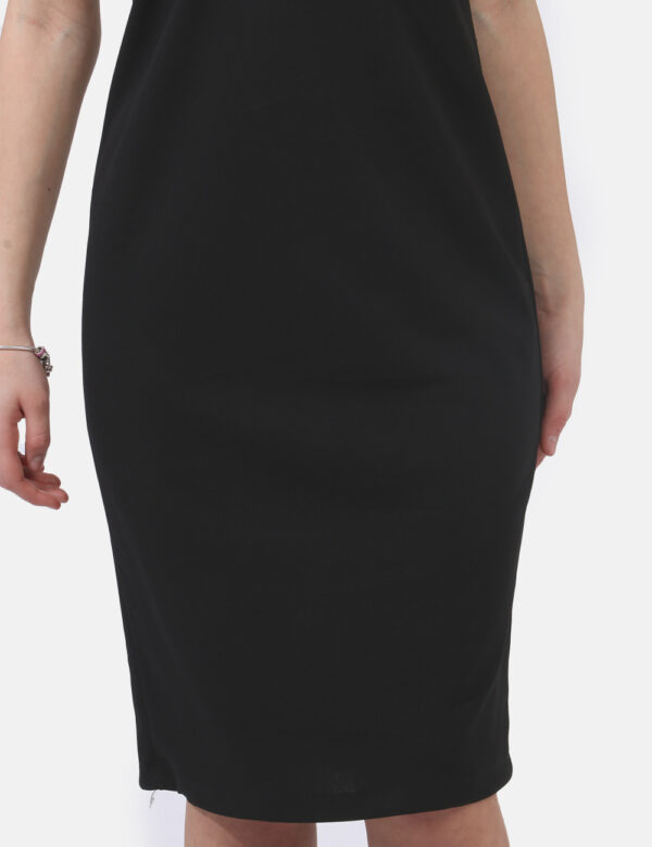 Abito corto con spalline strette ed in total nero. Presente scollo sagomato con arricciatura. La vestibilità è morbida e regolare. Il vestito è adatto per occasioni raffinate e facilmente combinabile con vari accessori. Semplicità e stile in un solo capo.