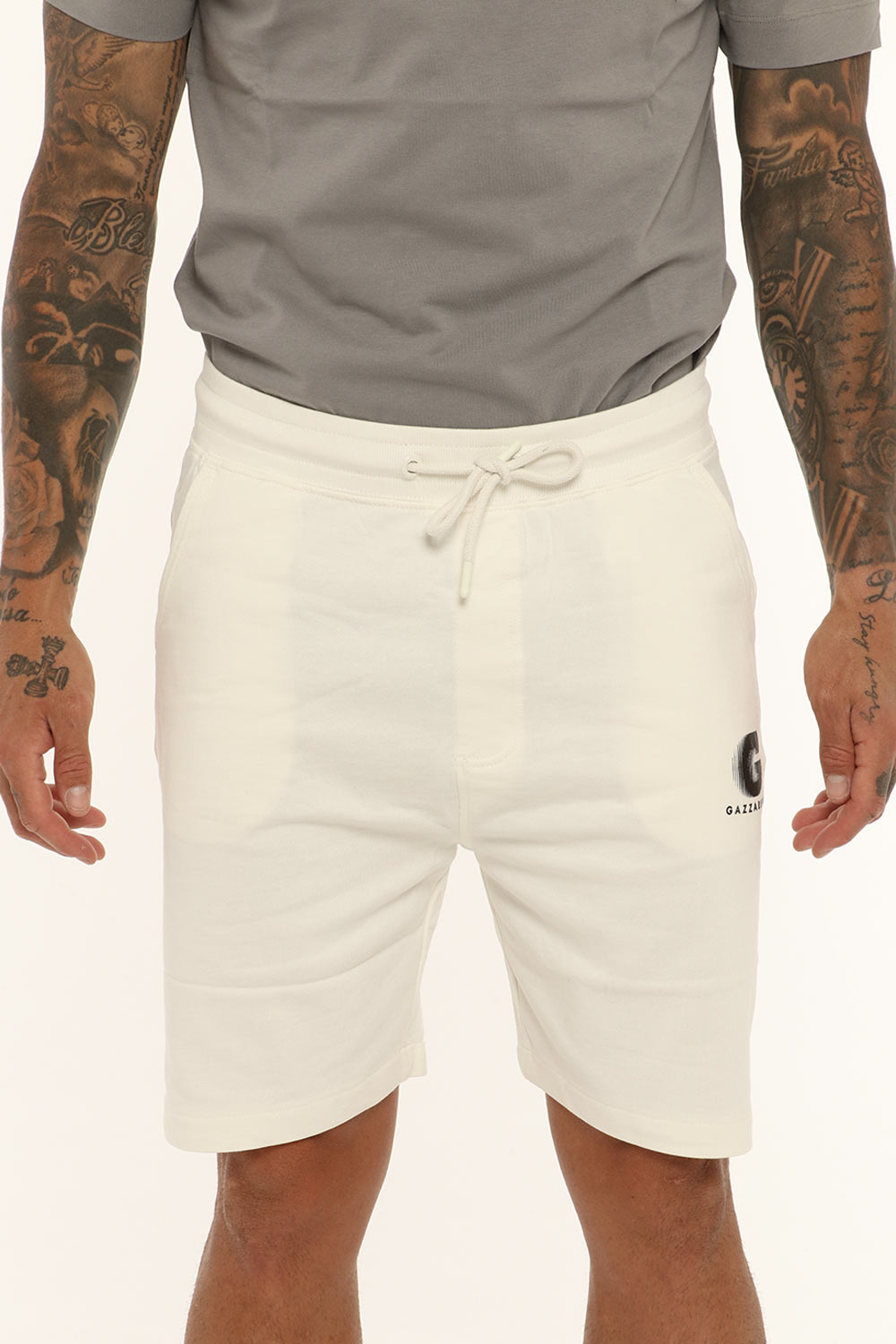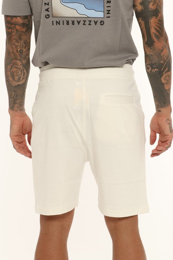 Bermuda in tessuto in total bianco con logo brand nero sulla gamba sinistra. Presenti tasche a taglio trasversale sul fronte e tasca a taglio sul retro. La vestibilità è morbida e regolabile grazie a coulisse in girovita con cordino abbinato. I bermuda sono adatti per occasioni casual/sportive. Troppo comodi per farne a meno.