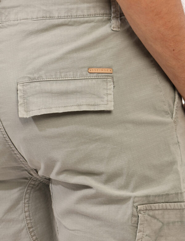 Bermuda classico in total grigio chiaro con tasche a taglio trasversale sul fronte, tasche a fessura sul retro con linguetta più tasche cargo laterali. La vestibilità è morbida e pratica grazie a coulisse con cordino abbinato più bottone e zip. I bermuda sono adatti per occasioni casual e facilmente combinabili. Praticità e stile in un solo capo.