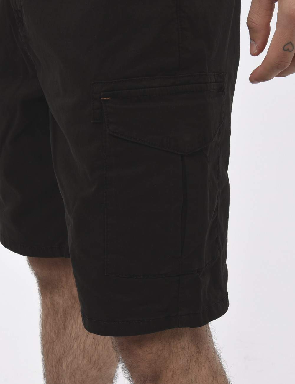 Bermuda in total nero con tasche a taglio trasversale sul fronte, tasche a toppa con chiusura a bottone sia laterali sia sul retro. La vestibilità è morbida e pratica grazie a bottone ad asola più zip. I bermuda sono adatti per occasioni casual e facilmente combinabili. Il tuo prossimo articolo nei prodotti salvati.