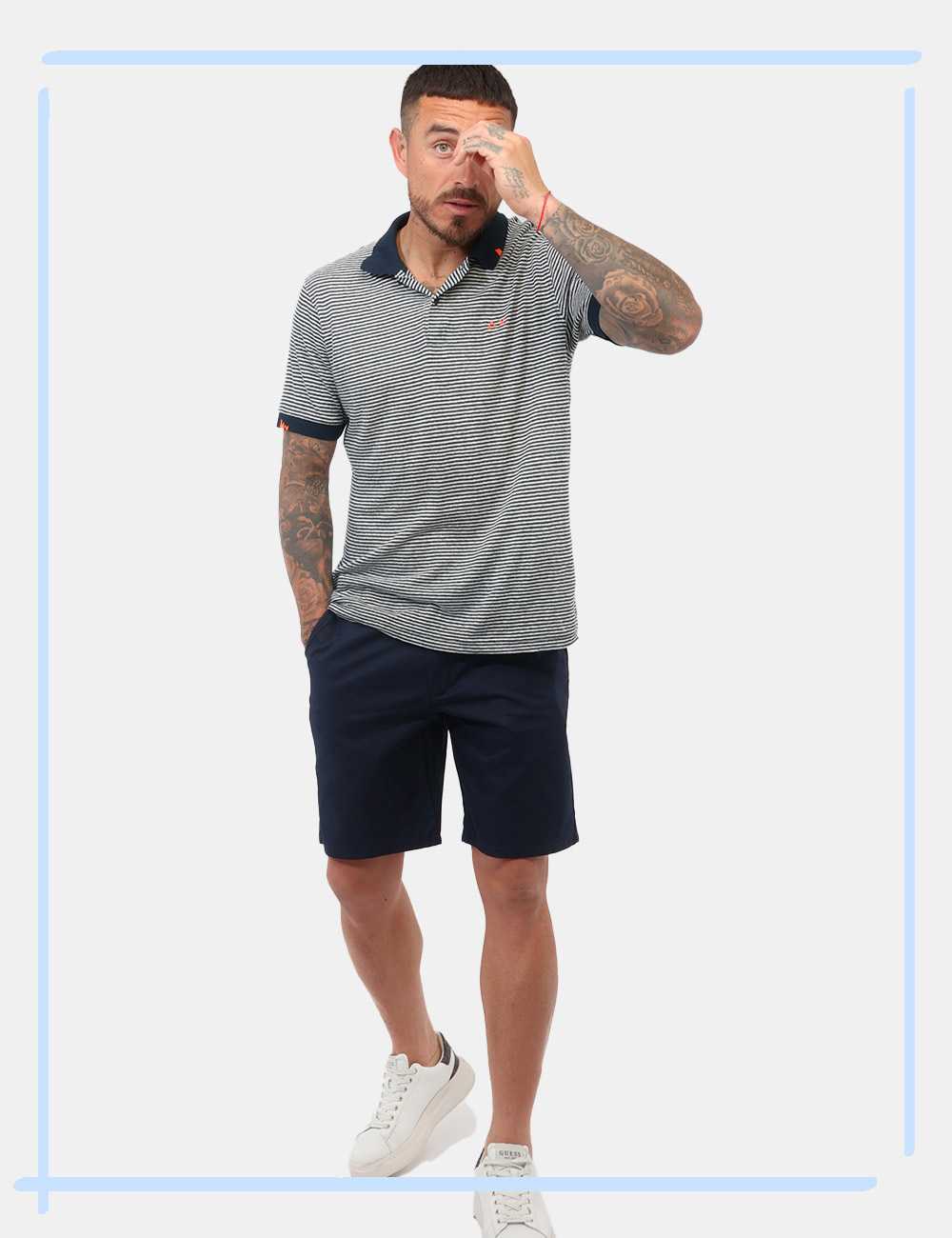 Per un look casual e senza sforzo, puoi abbinarlo a una t-shirt e sneakers, creando un outfit fresco e contemporaneo. Se desideri un’alternativa più curata, prova ad abbinarlo a una polo o a una camicia leggera per uno stile smart-casual perfetto anche per un aperitivo estivo.