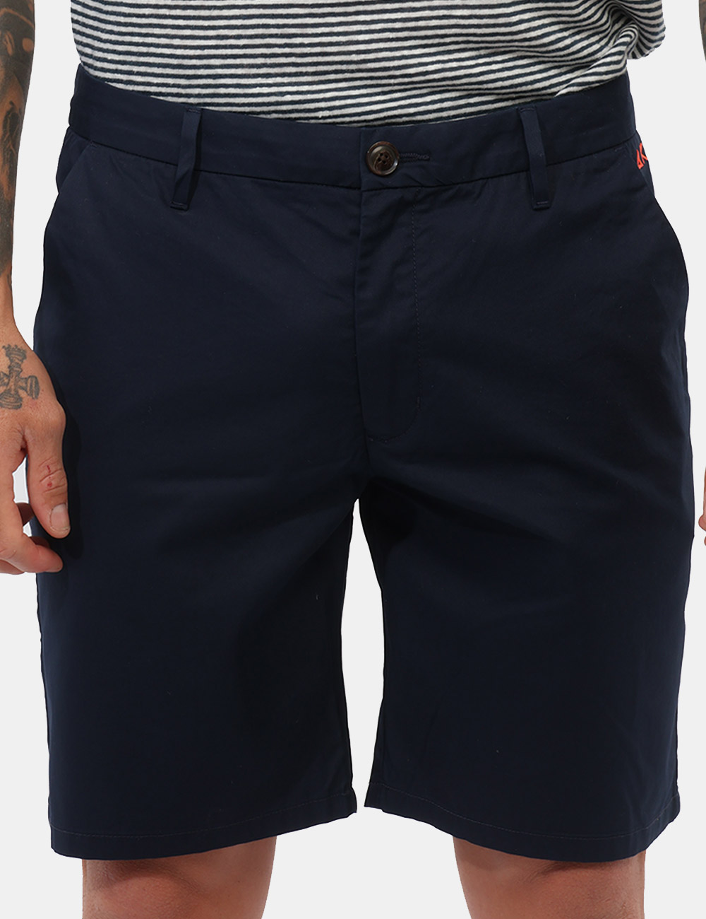 I Bermuda SUN68 Blu rappresentano una scelta essenziale e versatile per il tuo guardaroba estivo, perfetti se cerchi un capo pratico ma curato nello stile. Realizzati in un tessuto bilanciato composto da 50% cotone e 50% tencel, garantiscono freschezza, leggerezza e comfort anche nelle giornate più calde. Il modello è alto 187 cm e indossa la taglia 33, con una vestibilità regolare che assicura una linea pulita e naturale.