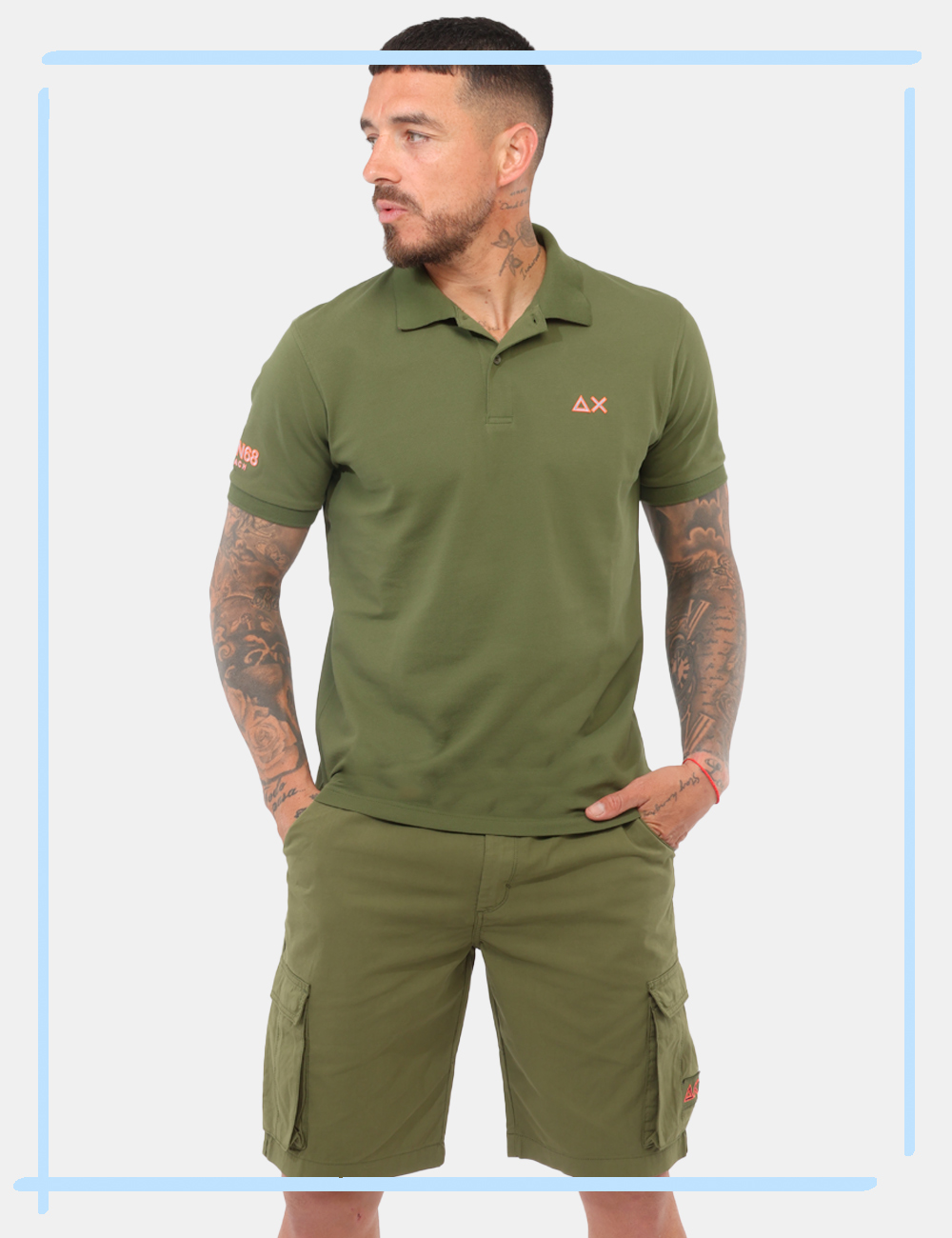 I Bermuda SUN68 Verdi sono pensati per accompagnarti con stile e praticità durante la stagione più calda. Realizzati in un tessuto leggero e confortevole composto da 50% tencel e 50% cotone, offrono una piacevole sensazione sulla pelle e una vestibilità regolare, ideale per affrontare le giornate con naturalezza. Il modello è alto 187 cm e indossa la taglia 33, confermando un fit equilibrato e contemporaneo.