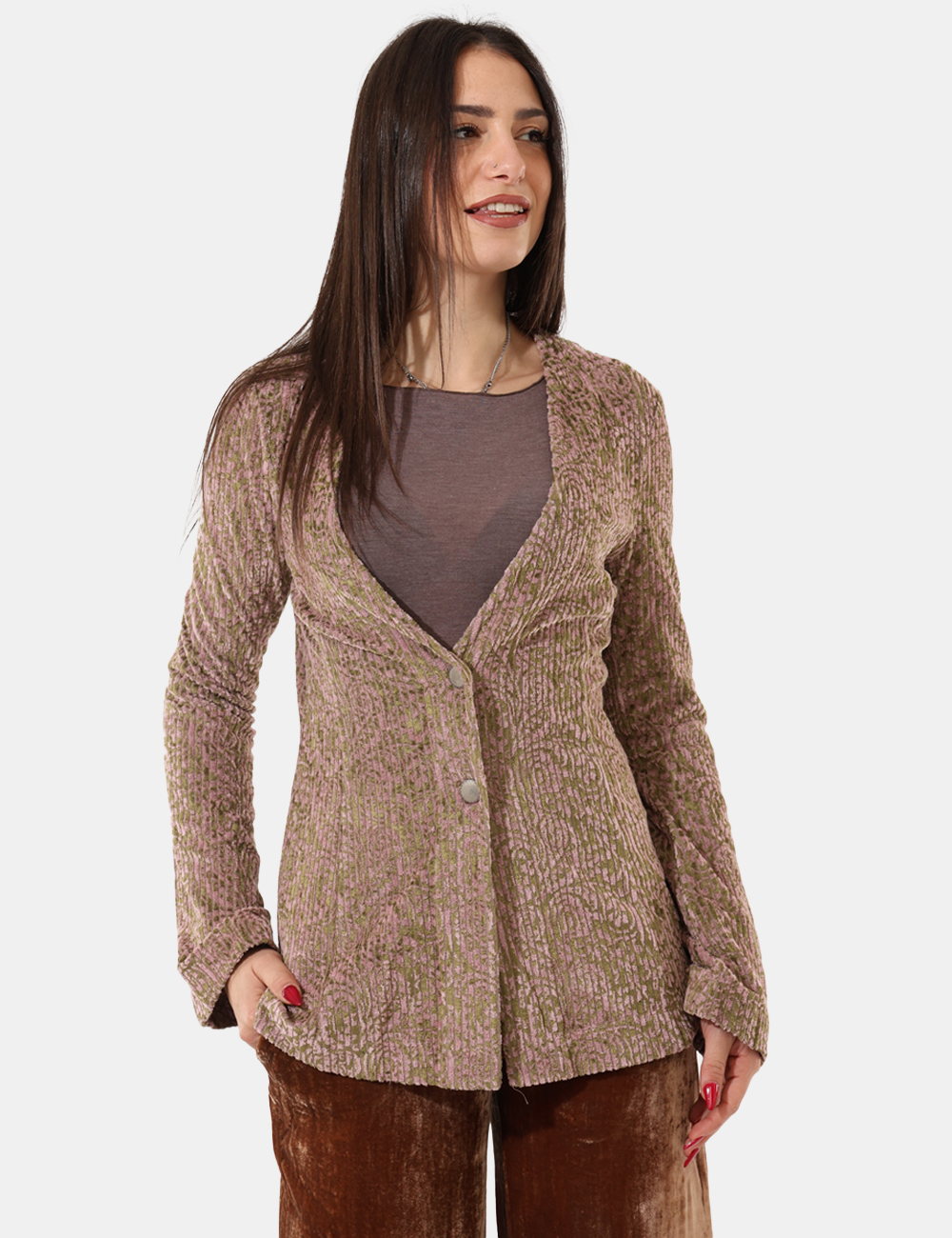 Blazer elegante in total fucsia. La vestibilità è morbida e pratica grazie a bottoni ad asola in tinta. Il blazer è adatto per occasioni casual ed è facilmente combinabile con i pantaloni coordinati per una versione tailleur raffinato. Dona un tocco di eleganza ai tuoi outfit.