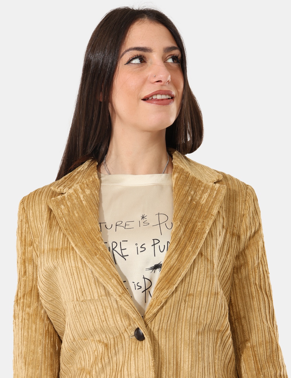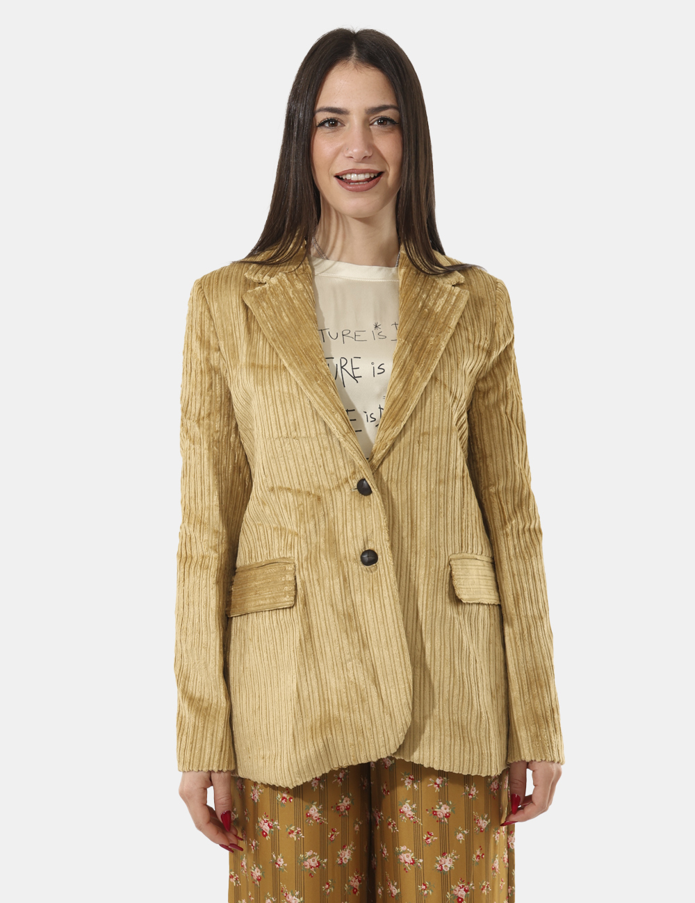 Blazer doppio bottone , lungo, con tasche e tessuto a rilievo.