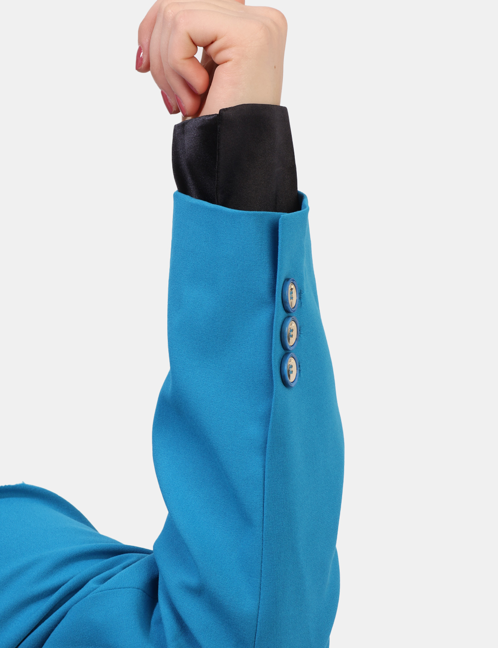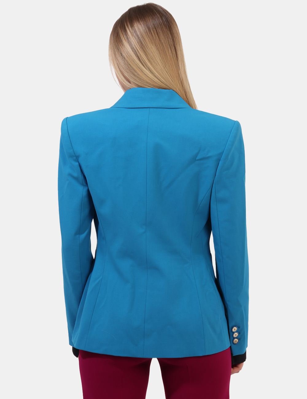 Blazer classico in total azzurro intenso con fake tasche. La vestibilità è morbida e pratica grazie a bottoni ad asola in tinta. Il blazer è adatto per occasioni casual/raffinate. Dona un tocco di colore ai tuoi outfit.