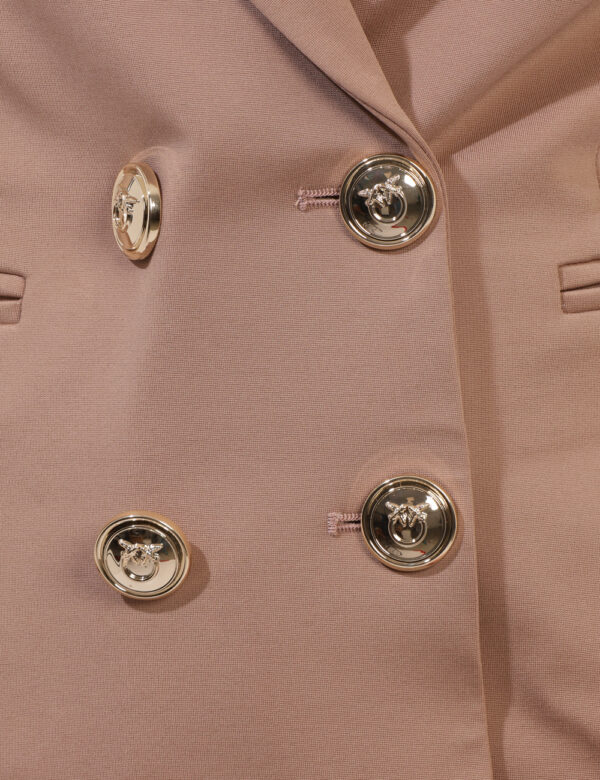Blazer classico in doppio petto ed in total marrone chiaro, con fake tasche a taglio. La vestibilità è morbida e pratica grazie ad evidenti bottoni ad asola in tinta dorata. Il blazer è adatto per occasioni casual/raffinate e facilmente combinabile. Indossalo per essere impeccabile.