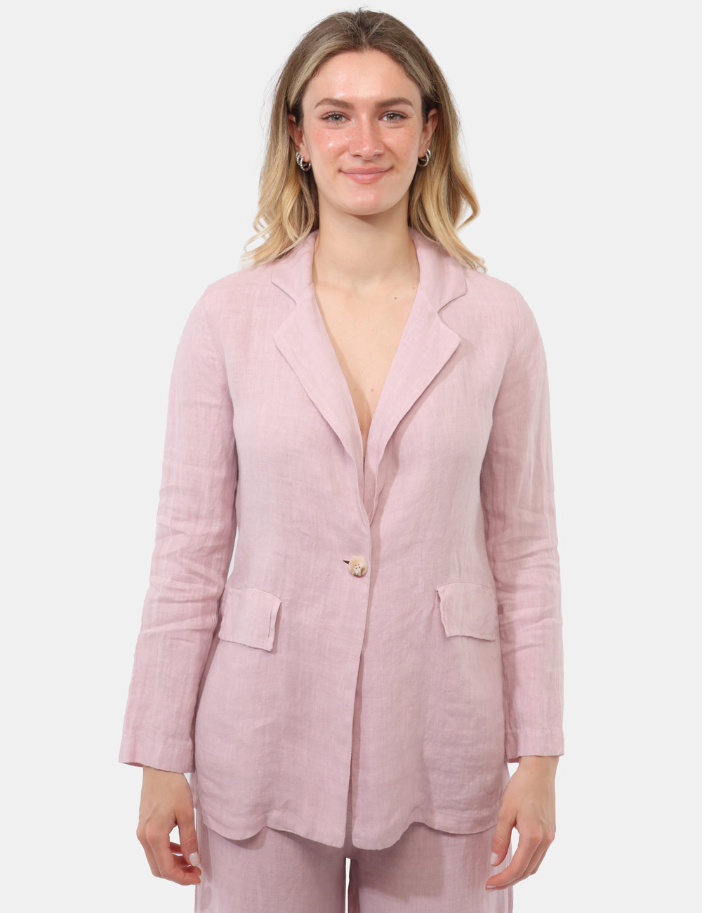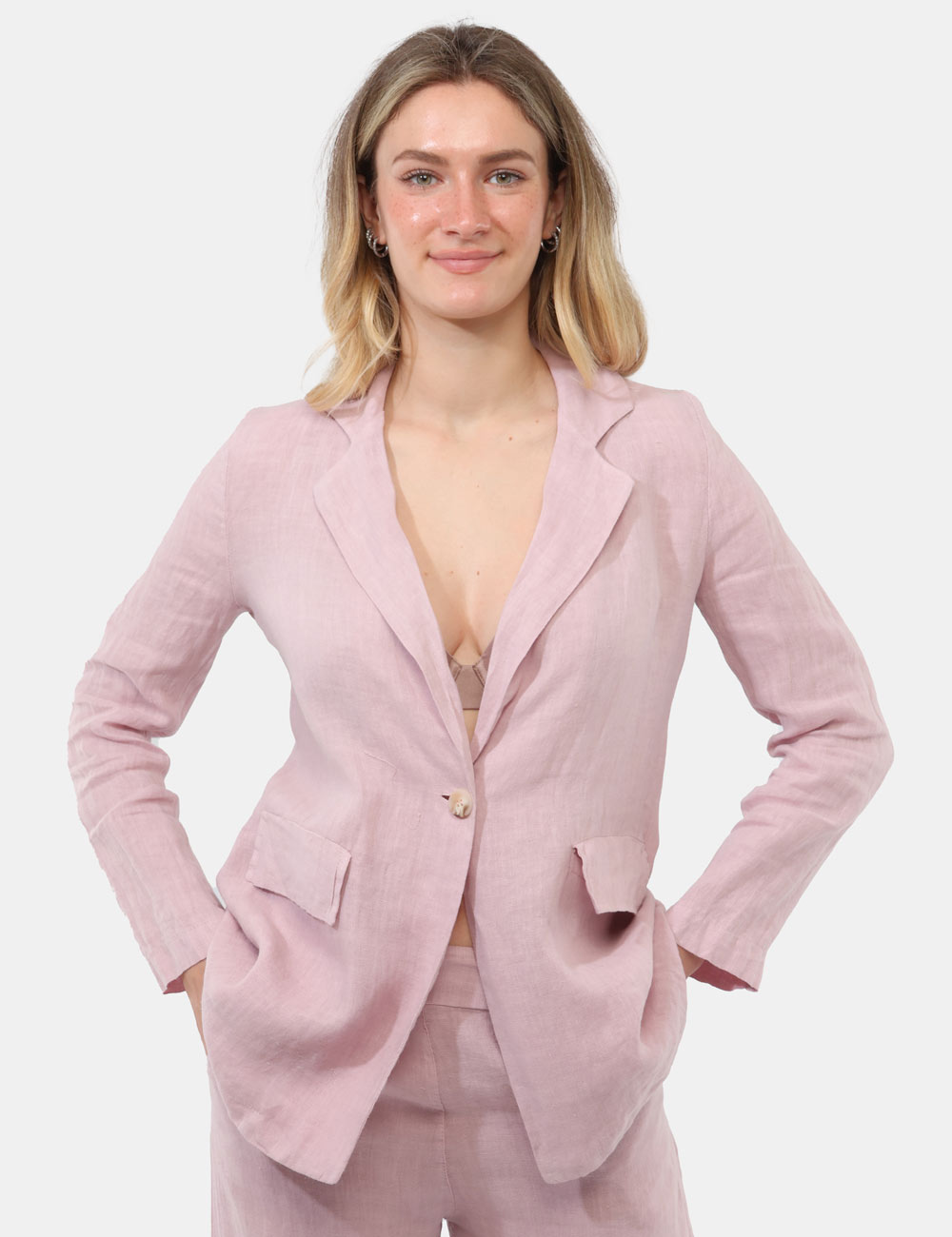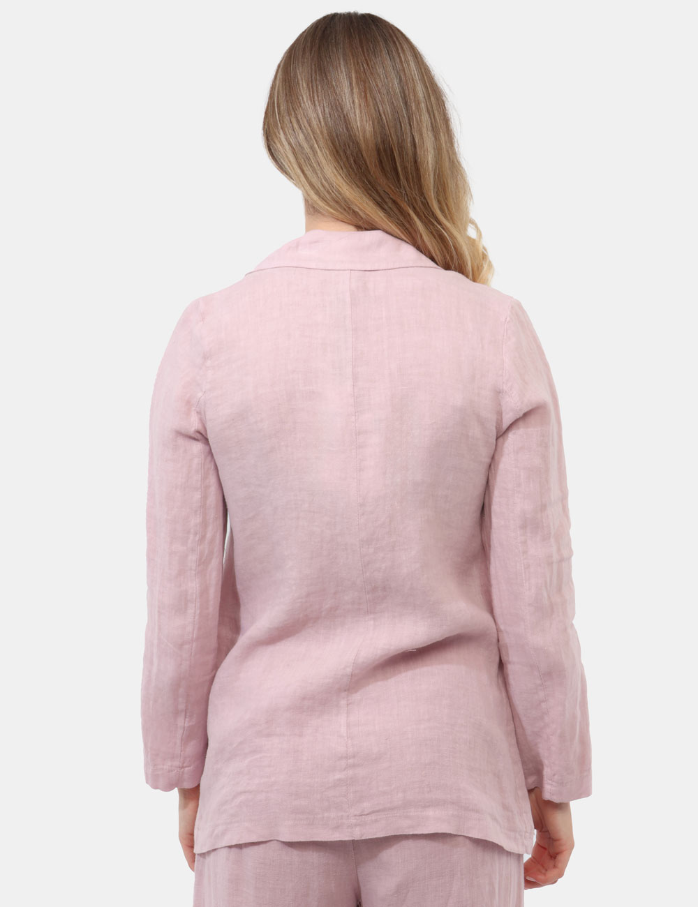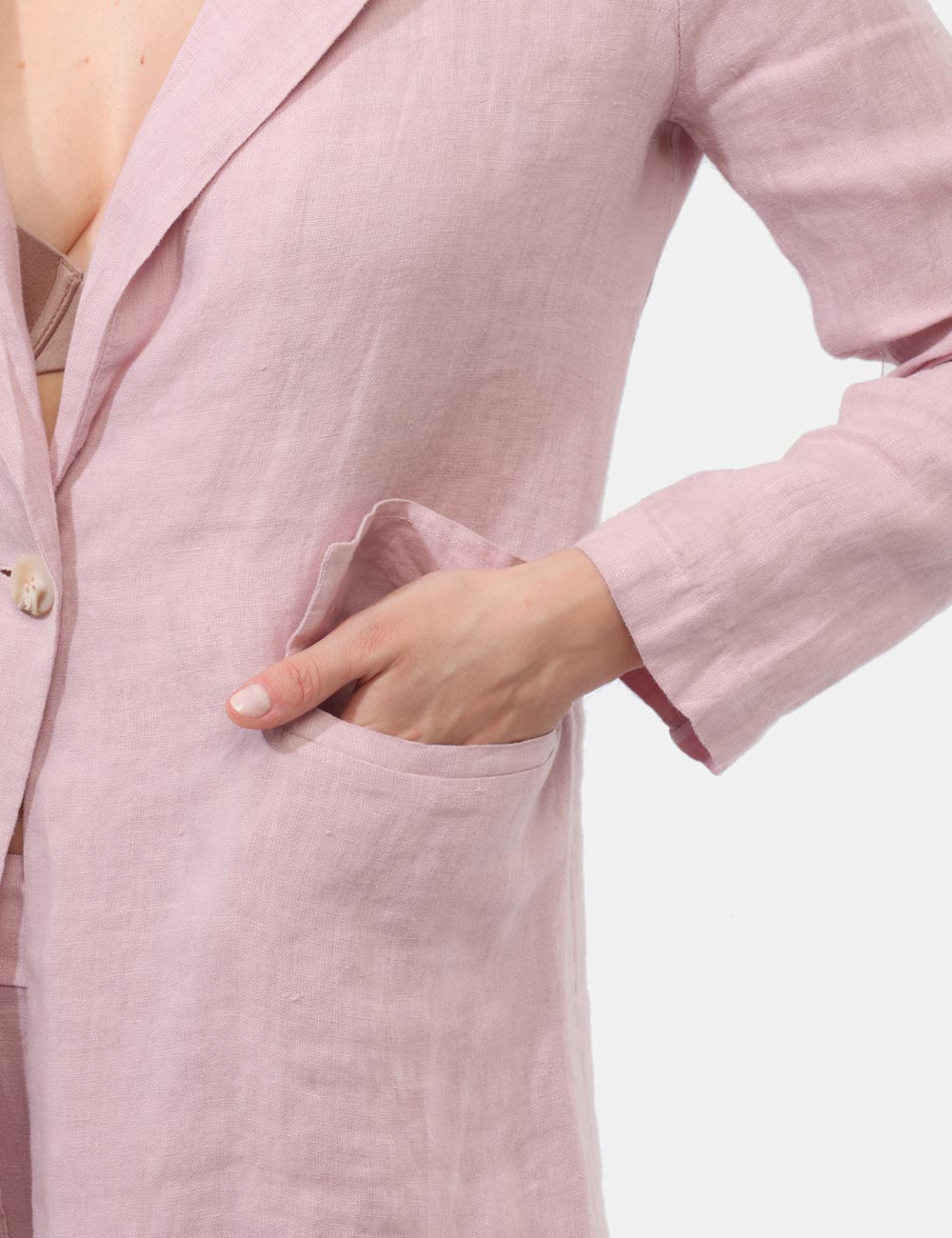 Delicato e sofisticato, il Blazer RUE DE CLERIE Rosa è il capo ideale per aggiungere un tocco femminile e contemporaneo ai tuoi outfit. Realizzato in 100% lino, garantisce leggerezza e traspirabilità, perfetto per accompagnarti con comfort durante le giornate più calde della stagione primavera estate.