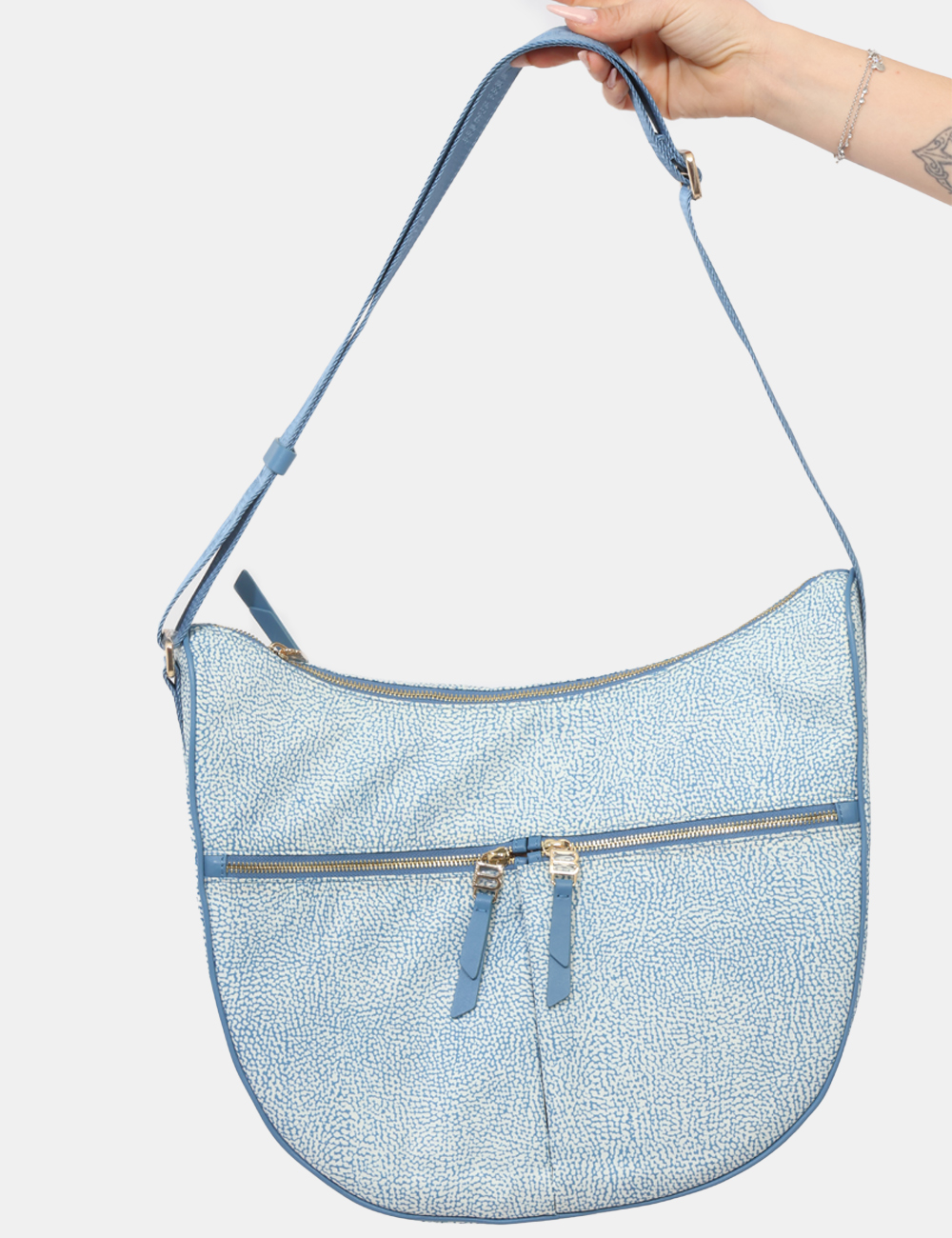 La Borsa BORBONESE Azzurra è l’accessorio perfetto per accompagnarti con stile nelle giornate più luminose. Pensata per una donna dinamica e attenta ai dettagli, questa borsa da donna adatta alla primavera estate unisce eleganza e praticità in un design raffinato e contemporaneo.Realizzata in 100% poliestere, è leggera ma resistente, ideale per un utilizzo quotidiano. La tracolla logata garantisce comfort e versatilità, mentre la stampa borbonese dona un tocco iconico e riconoscibile, perfetto per valorizzare ogni outfit.Le dimensioni (base 32 cm, altezza 30 cm, profondità 14 cm) offrono uno spazio ampio e ben organizzato, ideale per contenere tutto ciò che ti serve durante la giornata, dal lavoro al tempo libero. Puoi indossarla comodamente durante una giornata in città, per lo shopping o per un’uscita informale con le amiche.Questa borsa con tracolla logata e stampa borbonese si abbina facilmente a un look casual con jeans e t-shirt, ma si integra perfettamente anche con abiti leggeri e sandali per un outfit più femminile e curato.Versatile, elegante e funzionale, è un must-have di stagione che completa il tuo stile con naturalezza.Acquista in tutta tranquillità su SecondaStrada.com: tutti i prodotti sono originali e accuratamente selezionati. Codice articolo: 934275296P52 SB