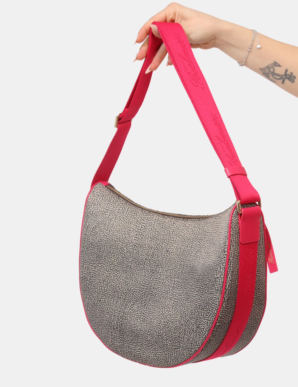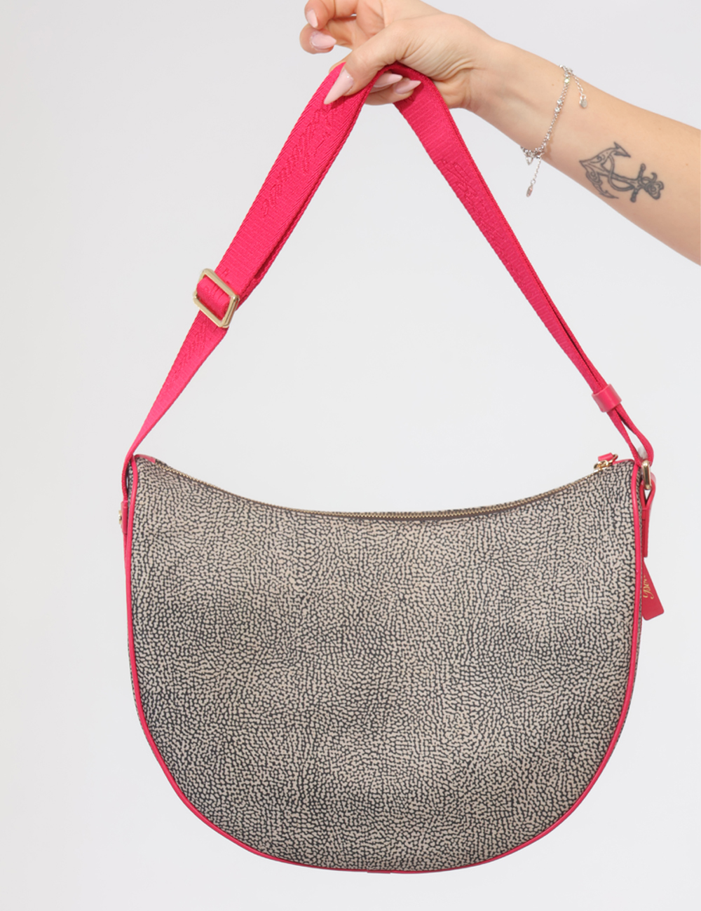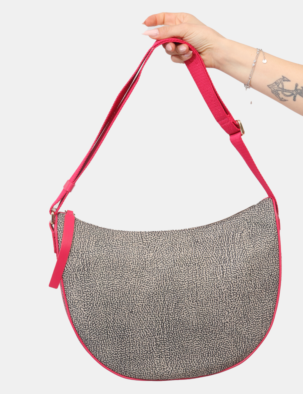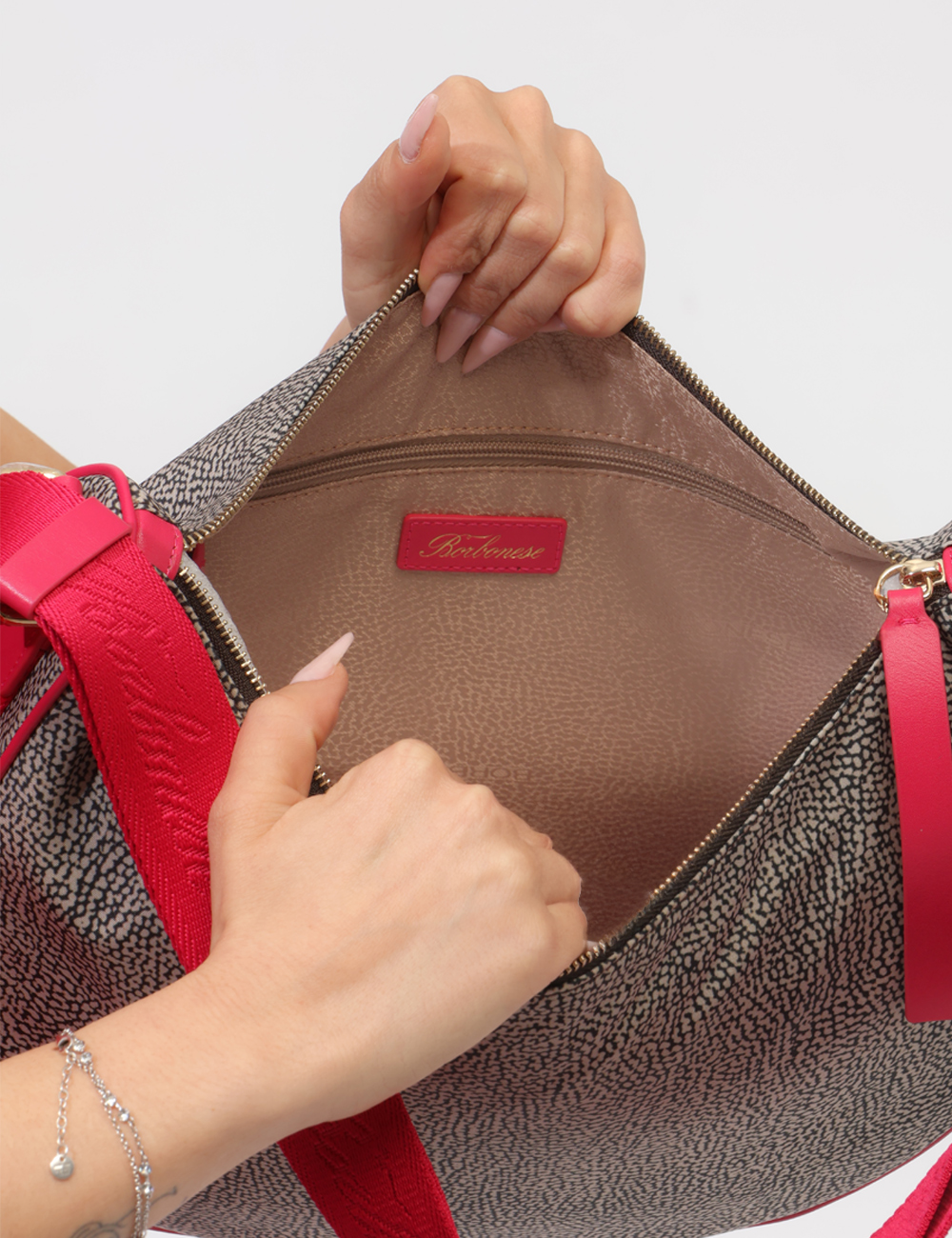 La Borsa BORBONESE Fucsia è l’accessorio ideale per aggiungere un tocco vivace e distintivo ai tuoi look di stagione. Perfetta per chi ama unire praticità e stile, questa borsa da donna adatta alla primavera estate si distingue per il suo design moderno e i dettagli iconici.Realizzata in 100% poliestere, è leggera, resistente e pensata per accompagnarti nelle tue giornate più dinamiche. La tracolla regolabile a contrasto con la stampa classica borbonese dona carattere e riconoscibilità, permettendoti di indossarla comodamente sia a spalla che crossbody, adattandosi al tuo stile e alle tue esigenze.Le dimensioni compatte (base 25 cm, altezza 25 cm, profondità 13 cm) la rendono perfetta per contenere l’essenziale senza risultare ingombrante. Ideale da indossare nel tempo libero, durante una passeggiata in città o per un’uscita informale, è la compagna perfetta per le giornate primaverili ed estive.Questa borsa con traccolla regolabile a contrasto con la stampa classica borbonese si abbina facilmente a un look casual con denim e sneakers, ma può essere valorizzata anche con un abito leggero e sandali per un outfit più femminile e raffinato.