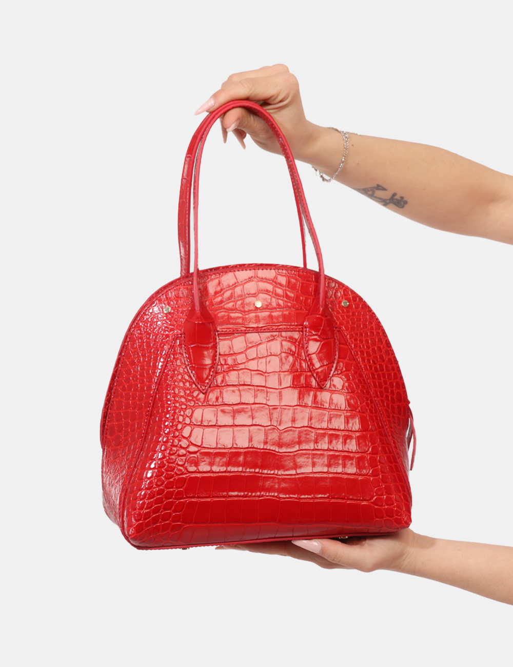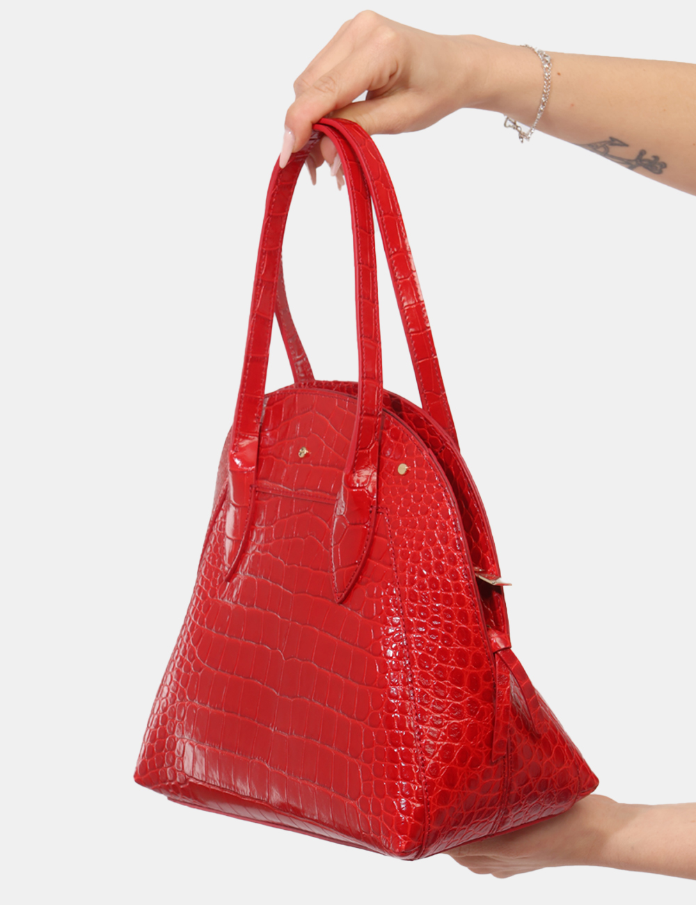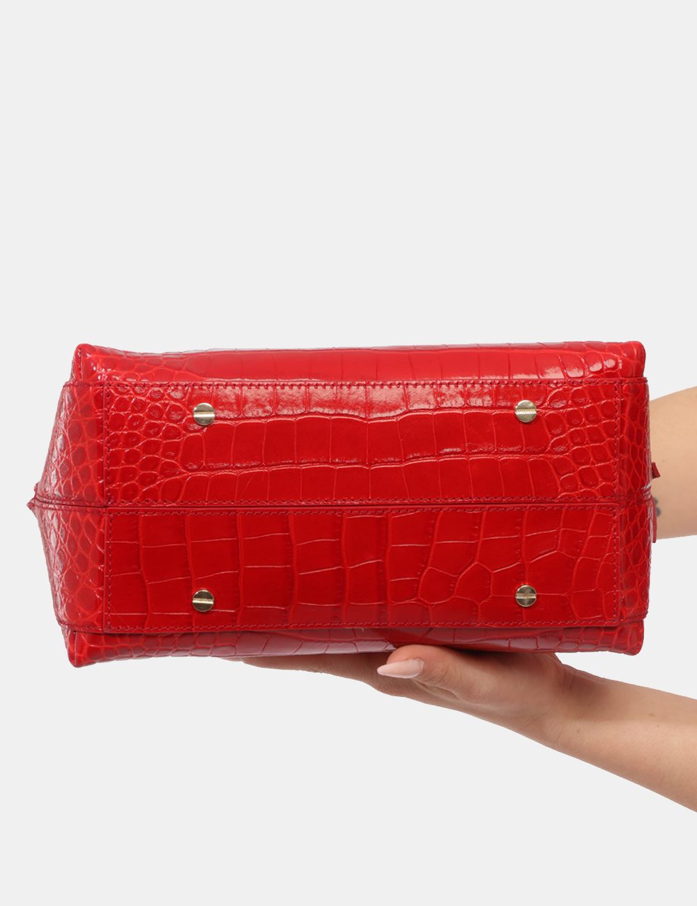 La Borsa con stampa coccodrillo e manici corti è pensata per offrirti stile e versatilità, diventando un elemento distintivo del tuo guardaroba.