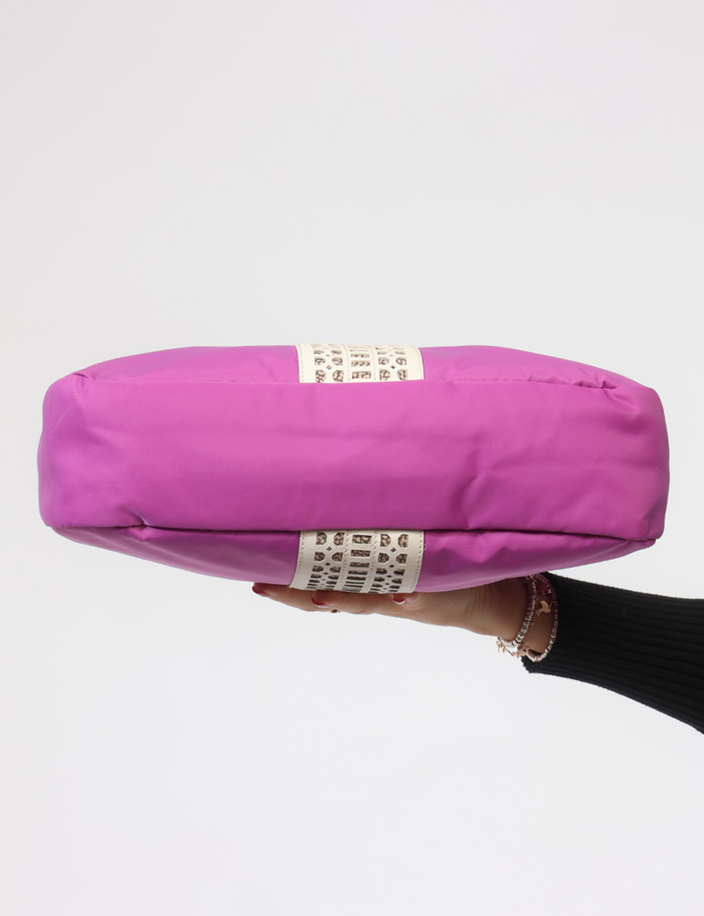 La Borsa con inserto stampa borbonese al centro, applicazioni e manici in panna è pensata per offrirti comfort e stile in ogni occasione, diventando un elemento distintivo del tuo guardaroba.