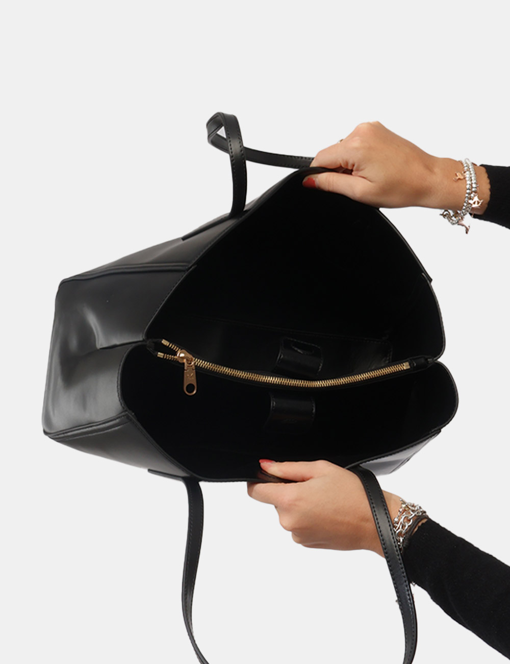 Pensata per una donna pratica ma attenta ai dettagli, questa borsa rappresenta un equilibrio ideale tra capienza, comfort e design minimal.