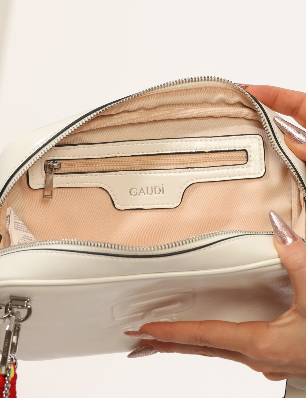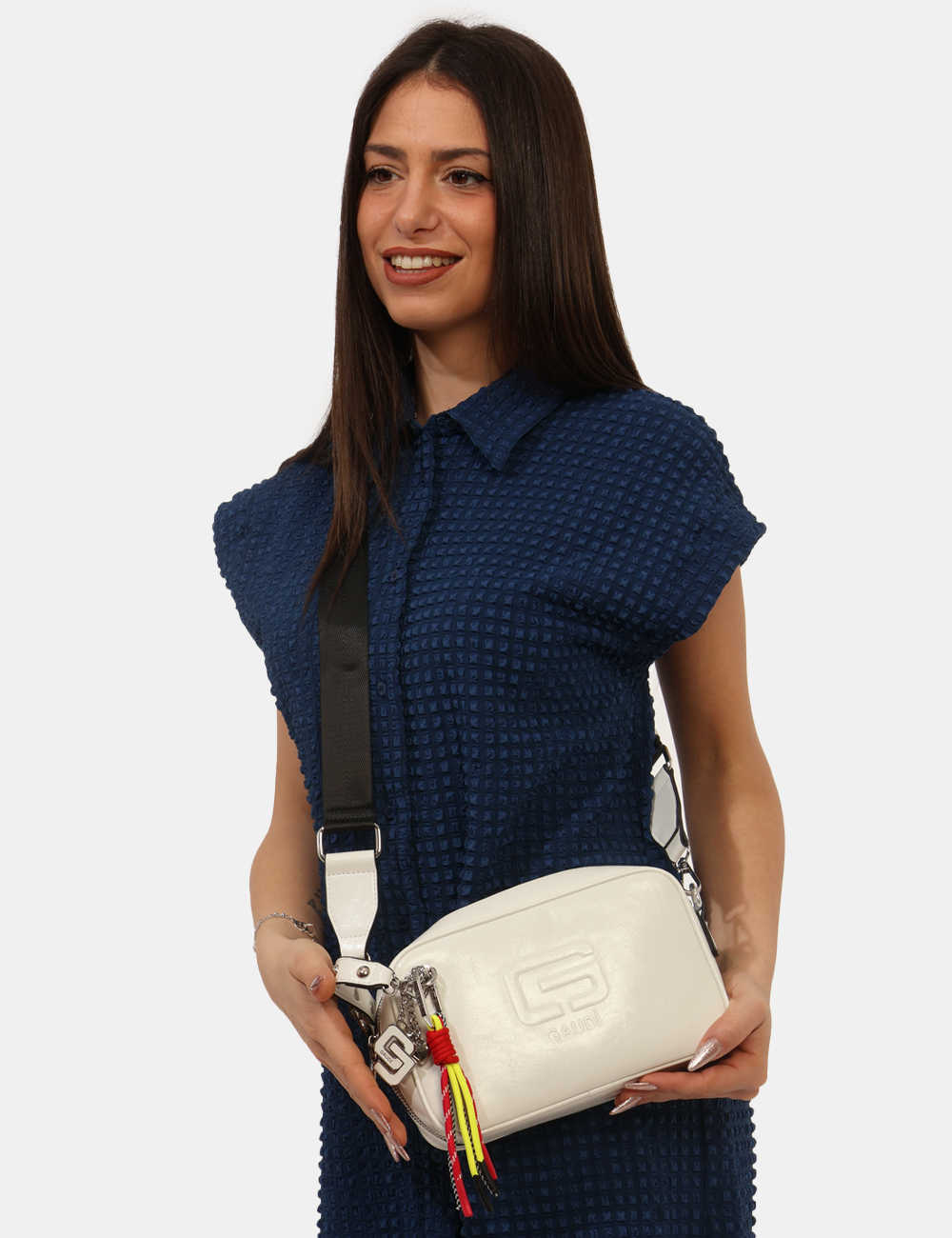 La Borsa GAUDI Bianca è l’accessorio perfetto per illuminare i tuoi look con eleganza e semplicità. Questa borsa da donna adatta a tutte le stagioni si distingue per la tonalità bianca luminosa e versatile, ideale per completare sia outfit casual sia abbinamenti più sofisticati. Il design compatto e curato è impreziosito da un pendente decorativo che aggiunge un tocco femminile e contemporaneo. Realizzata in 100% poliuretano, offre una struttura leggera ma resistente, pensata per accompagnarti ogni giorno con praticità. La Borsa con chiusura a zip, taschina interna, tracolla regolabile, pendente garantisce funzionalità e comfort: la zip protegge il contenuto, la taschina interna consente di organizzare al meglio gli oggetti essenziali, mentre la tracolla regolabile permette di indossarla comodamente a spalla o crossbody, adattandola alle tue esigenze. Le misure taglia U sono: base inferiore 23 cm, altezza massima 14 cm, profondità 6 cm. Si tratta di un pezzo unico di campionario, dettaglio che la rende ancora più esclusiva. Perfetta nel tempo libero di giorno con jeans e sneakers per un look fresco e luminoso, oppure di sera con un abito elegante per un risultato raffinato e contemporaneo. Un accessorio versatile e femminile, pensato per accompagnarti con stile in ogni occasione. Tutti i prodotti su SecondaStrada.com sono originali. Codice articolo V6AE 12809 MA CB.