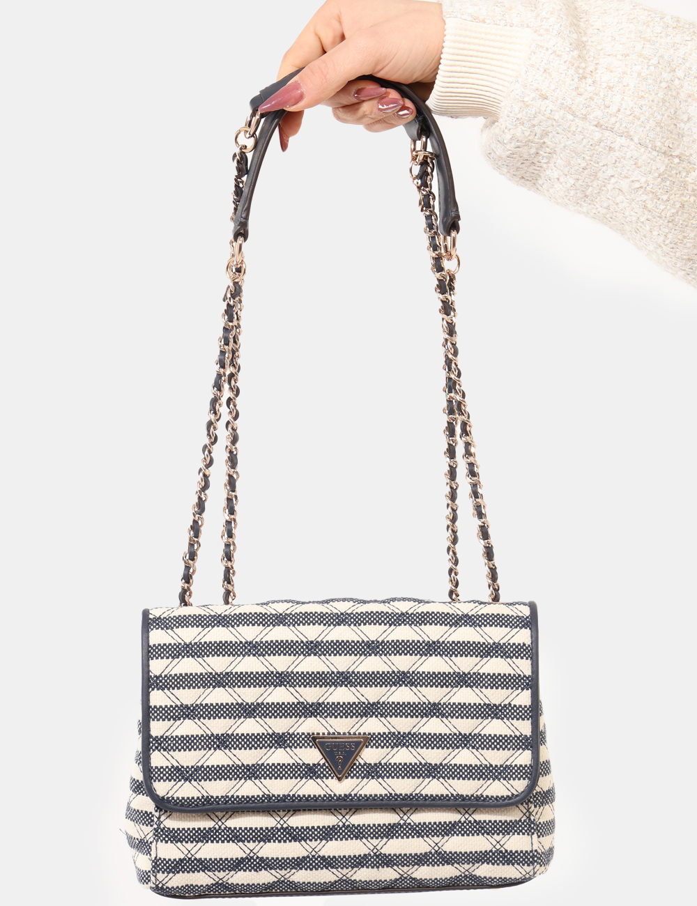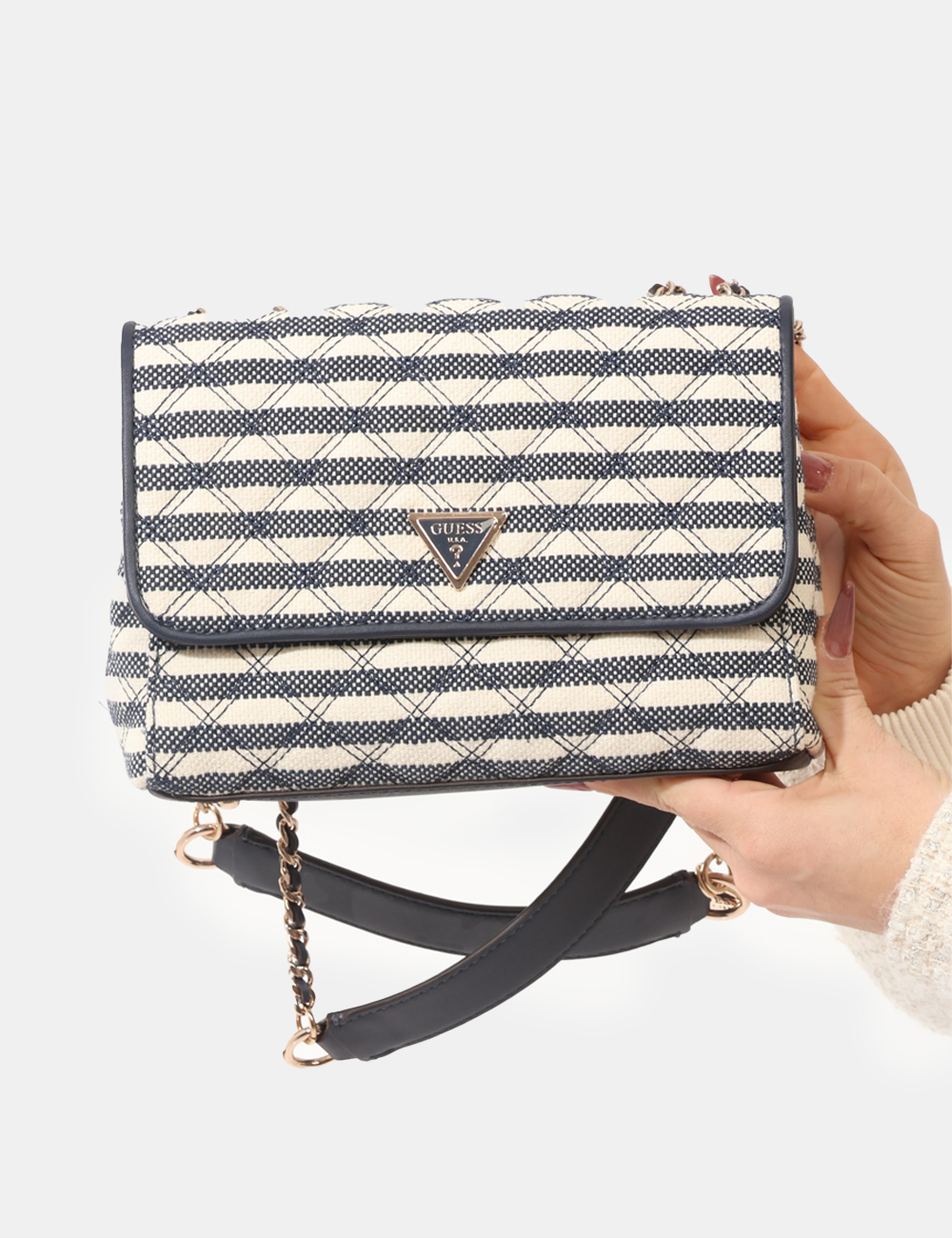 La Borsa GUESS Blu è l’accessorio ideale per la donna che desidera unire stile, femminilità e praticità nei look della stagione primavera estate. Questo modello si distingue per il suo design elegante ma attuale, impreziosito dal tessuto trapuntato a contrasto che dona profondità e carattere alla borsa, e dalla catena argento che aggiunge un dettaglio luminoso e contemporaneo. Il colore blu, intenso e raffinato, rende questa borsa versatile e facile da abbinare, perfetta per accompagnare outfit sia casual che più curati.