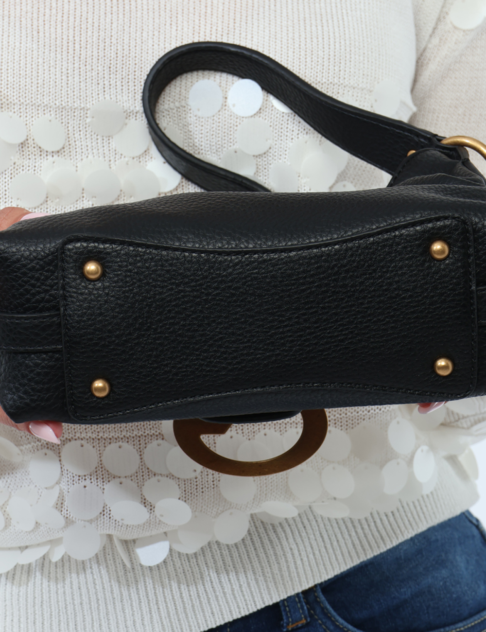 Puoi indossarla facilmente nel tempo libero, per un’uscita in città o un aperitivo serale, aggiungendo un dettaglio chic al tuo outfit. Abbinala a una gonna in jeans e una camicia morbida per un look femminile e casual, oppure scegli un abito fluido e stivali texani per uno stile più deciso e contemporaneo. La borsa con tessuto a rilievo e fibbia dorata è la scelta perfetta per chi cerca un accessorio distintivo ma versatile.
