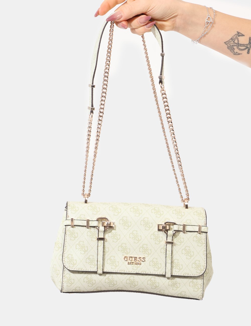 La Borsa GUESS Verde è l’accessorio perfetto per dare carattere e freschezza ai look della stagione primavera estate. Pensata per la donna che ama uno stile femminile ma deciso, questa borsa unisce un design elegante a dettagli curati che ne valorizzano l’estetica. Il colore verde, luminoso e naturale, richiama l’energia della bella stagione ed è ideale per chi desidera distinguersi con una nota di colore raffinata. La catena dorata e le fibbie aggiungono un tocco prezioso e contemporaneo, rendendo il modello versatile e attuale.