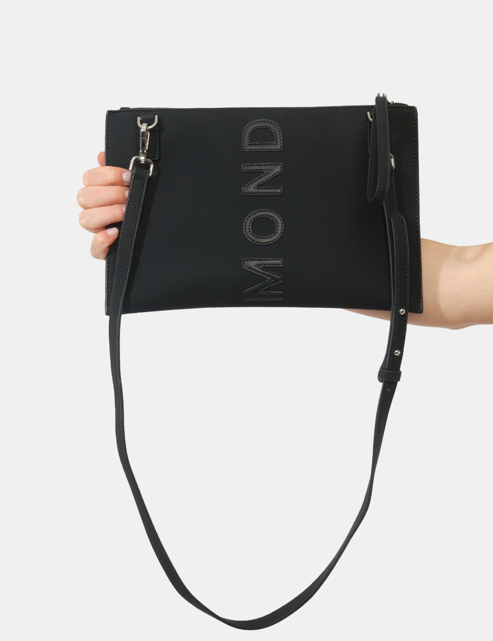 La borsa da donna adatta a tutte le stagioni è perfetta da indossare nel tempo libero, durante una passeggiata o per accompagnarti nelle tue attività quotidiane, quando desideri un accessorio pratico ma curato nei dettagli. Questa borsa con scritta tono su tono e logo argentato si abbina facilmente a un look casual con jeans e t-shirt, ma si presta anche a outfit più minimal o total black per un risultato elegante e contemporaneo.