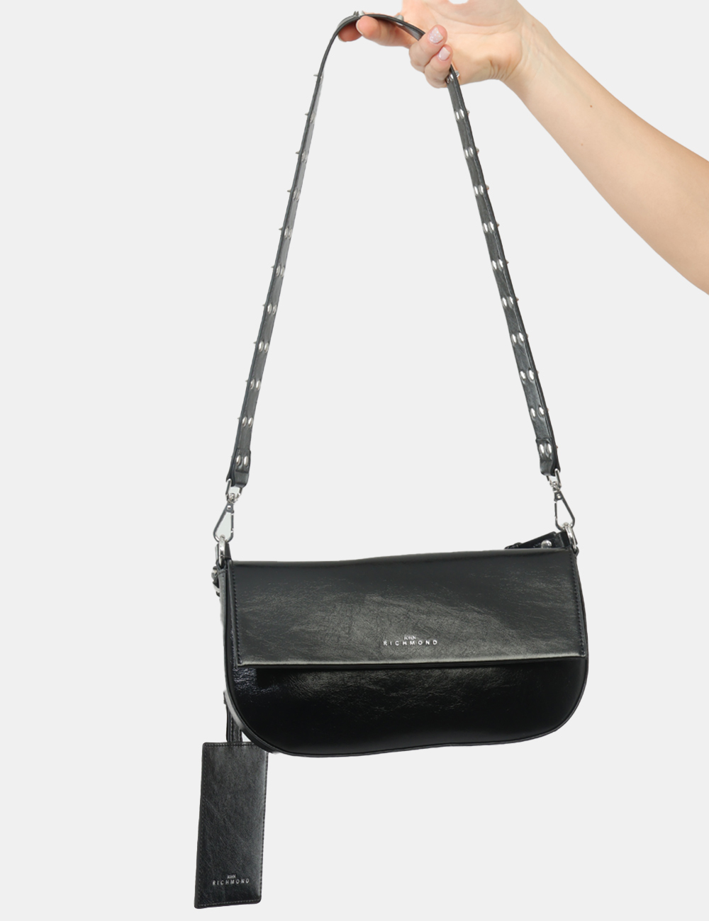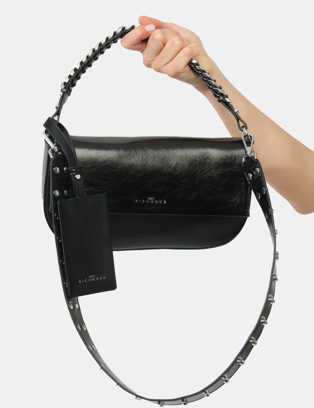 Compatta, grintosa e dal design contemporaneo, questa borsa da donna firmata JOHN RICHMOND è l’accessorio ideale per accompagnarti con stile in ogni momento della giornata. Il colore nero, intramontabile e facile da abbinare, è valorizzato dalla tracolla con borchie argento, un dettaglio distintivo che dona carattere e un tocco rock al tuo look.