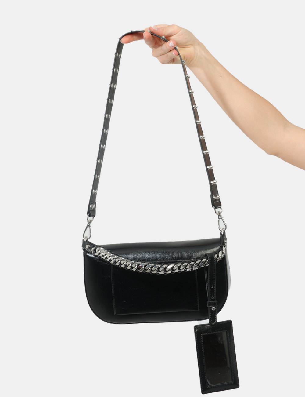 La borsa da donna adatta a tutte le stagioni è perfetta da indossare nel tempo libero, durante una passeggiata in città o per un’uscita informale, quando vuoi aggiungere personalità al tuo outfit. Questa borsa con tracolla con borchie argento si abbina facilmente a un look casual con jeans e t-shirt, ma si presta anche a completare outfit più decisi, come un total black o uno stile urban con giacca in pelle.