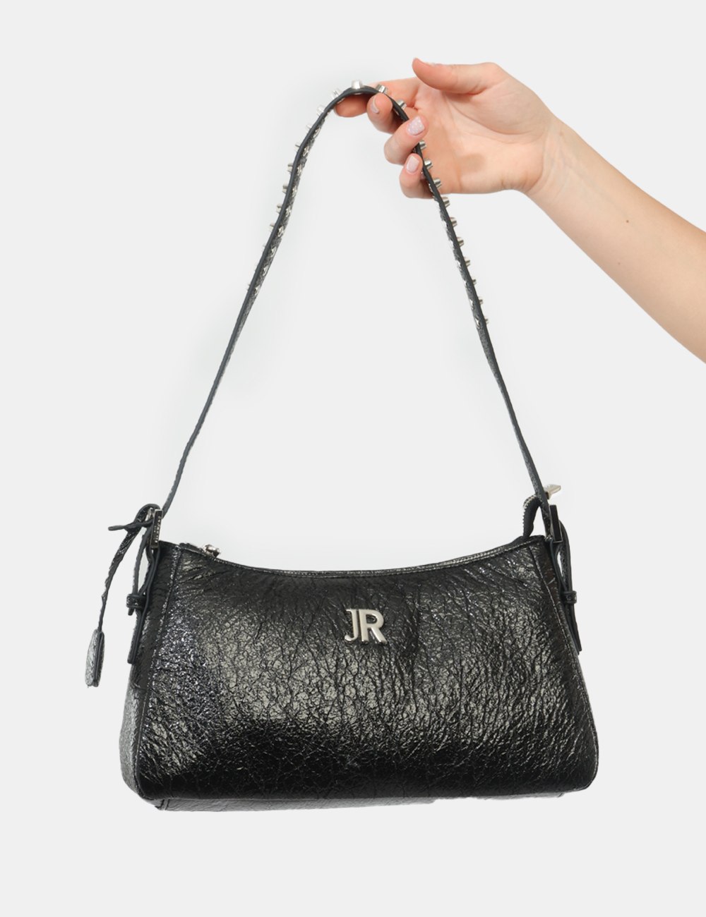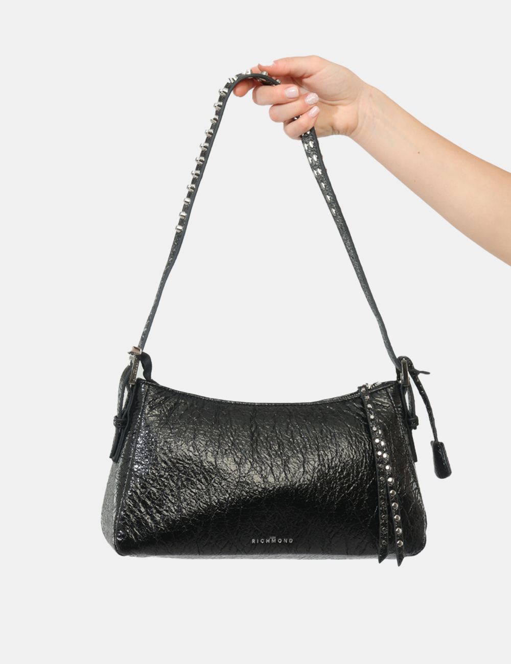 Decisa ma sofisticata, questa borsa da donna firmata JOHN RICHMOND è l’accessorio ideale per chi desidera unire stile e personalità in un unico dettaglio. Il colore nero, intramontabile e versatile, è valorizzato da borchie argentate e da un originale tessuto increspato, che dona movimento e carattere al design.
