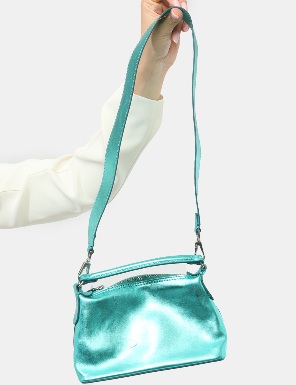 Ideale nel tempo libero, per un aperitivo o una passeggiata in città, questa borsa con con tracolla , tessuto metallico si abbina perfettamente a un look casual con jeans e top leggero, oppure a un abito estivo per un outfit più ricercato.