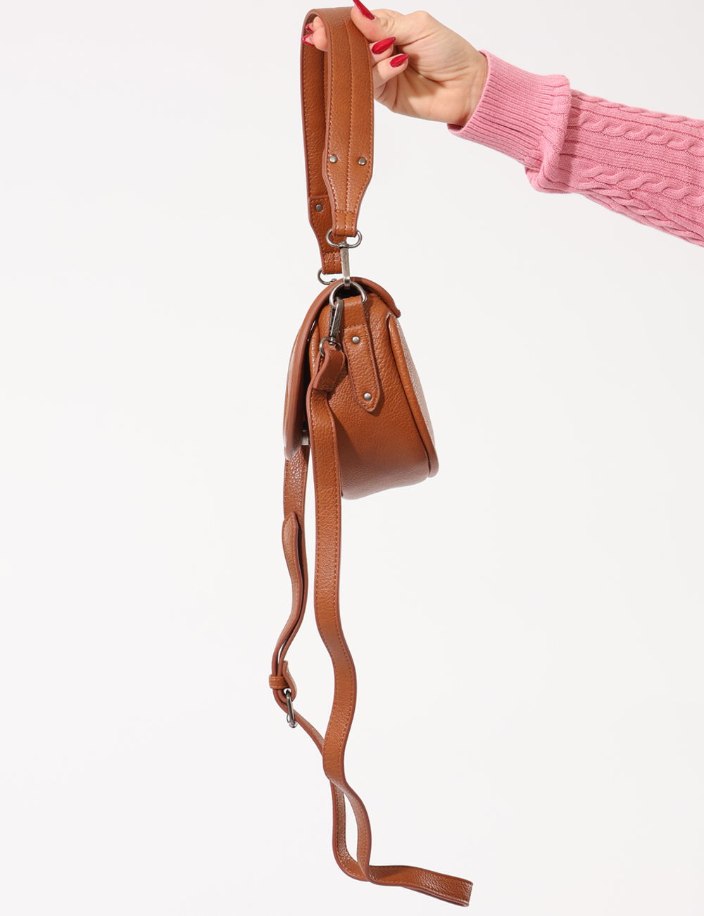 Borsa tracolla di piccole dimensioni, in total marrone biscotto con logo brand sagomato, unico scompartimento con chiusura a bottone più taschina interna. L’indossatura è pratica e maneggevole grazie a tracolla in tinta regolabile e manico morbido. Ideale per occasioni casual. Completa la tua collezione di borse.