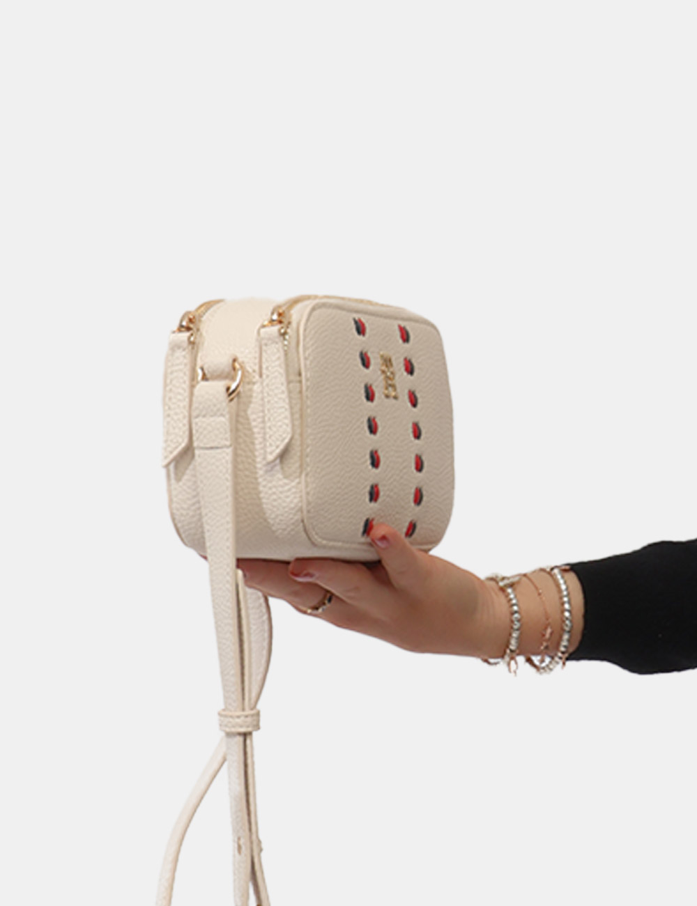 Ideale nel tempo libero, per una passeggiata in città, un pranzo all’aperto o una serata estiva, questa borsa si abbina facilmente a un outfit casual con jeans chiari e top leggero oppure a un look più femminile con abiti fluidi e sandali. Il colore beige, delicato e luminoso, esalta l’abbronzatura e si adatta perfettamente alle palette estive.