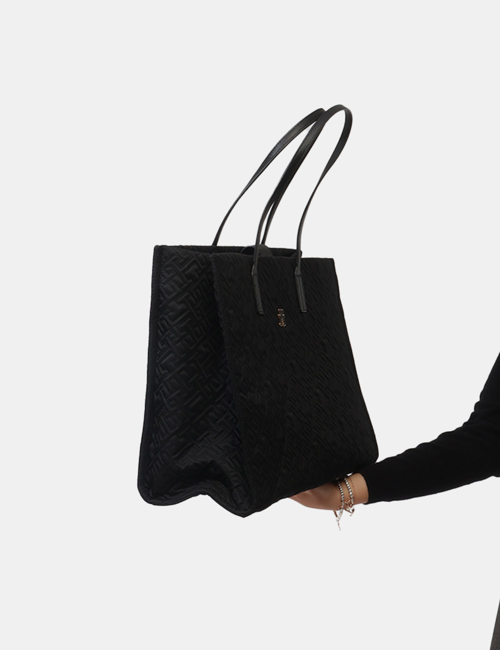 La Borsa TOMMY HILFIGER Nera è la scelta ideale per chi ha bisogno di spazio, praticità e uno stile contemporaneo in un unico accessorio. Realizzata in nylon, leggero e resistente, è pensata per accompagnarti nelle giornate più intense senza rinunciare all’eleganza.