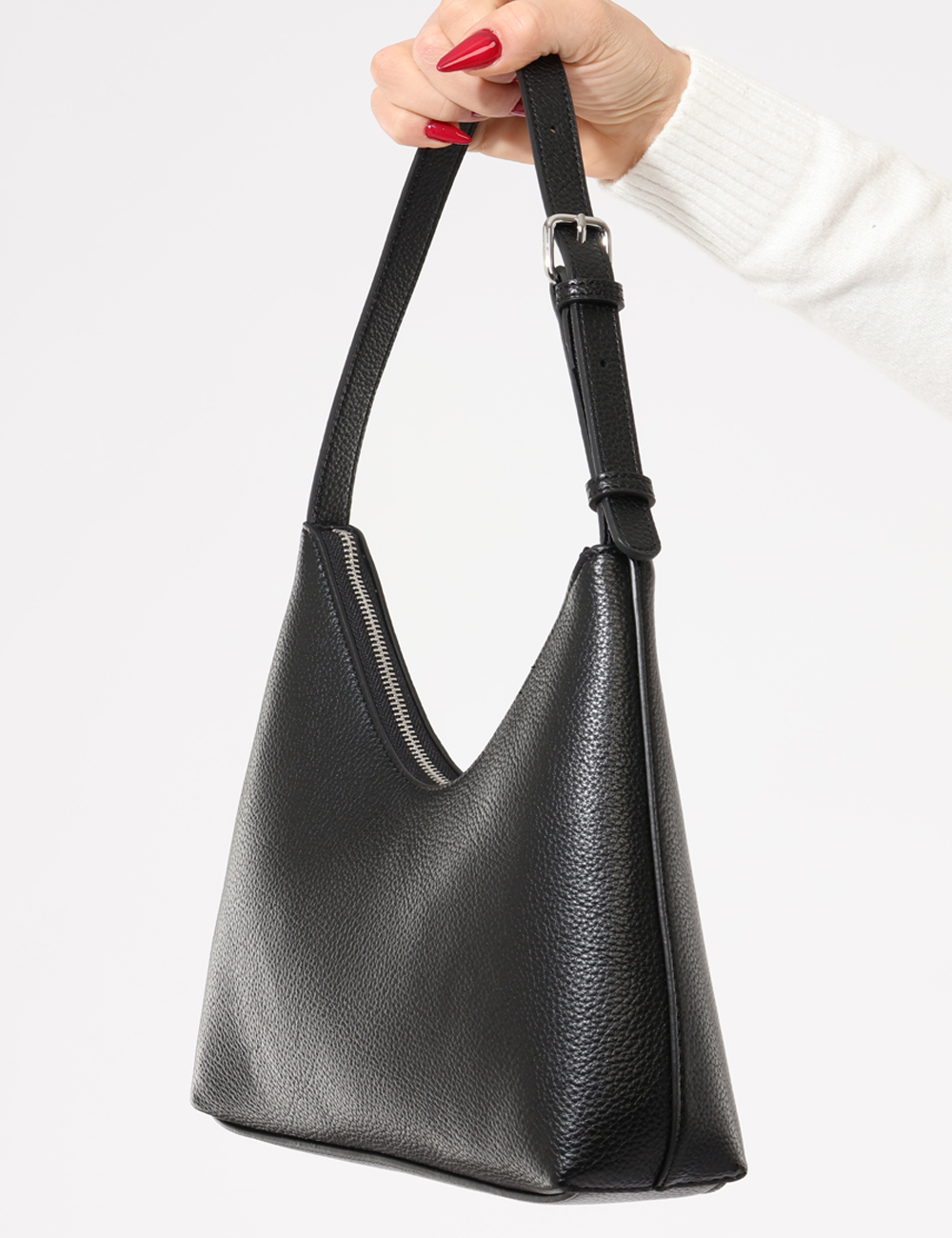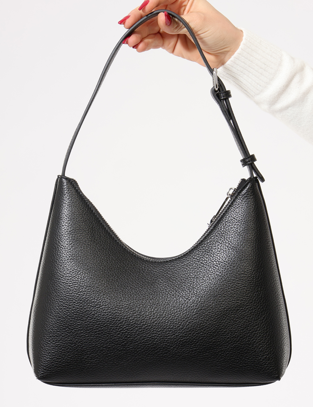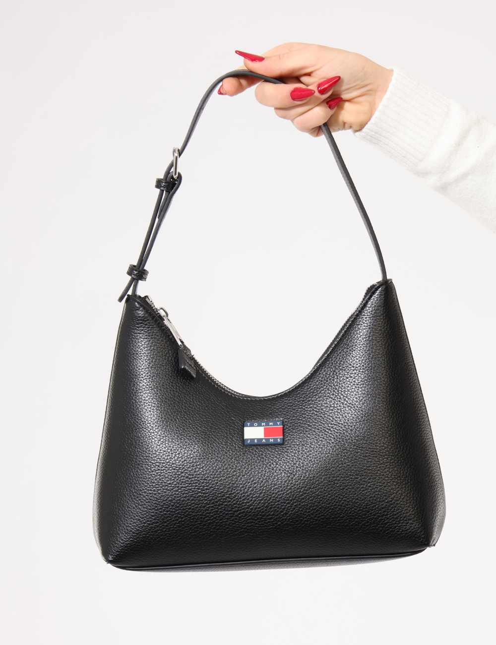 Borsa semirigida, di medie dimensioni, in total nero con patch logo brand ed unico scompartimento con chisura a zip. L’indossatura è morbida e pratica grazie a manico regolabile. La borsa è adatta per occasioni casual, ideale anche per il giorno. Il tuo prossimo articolo nei prodotti salvati.