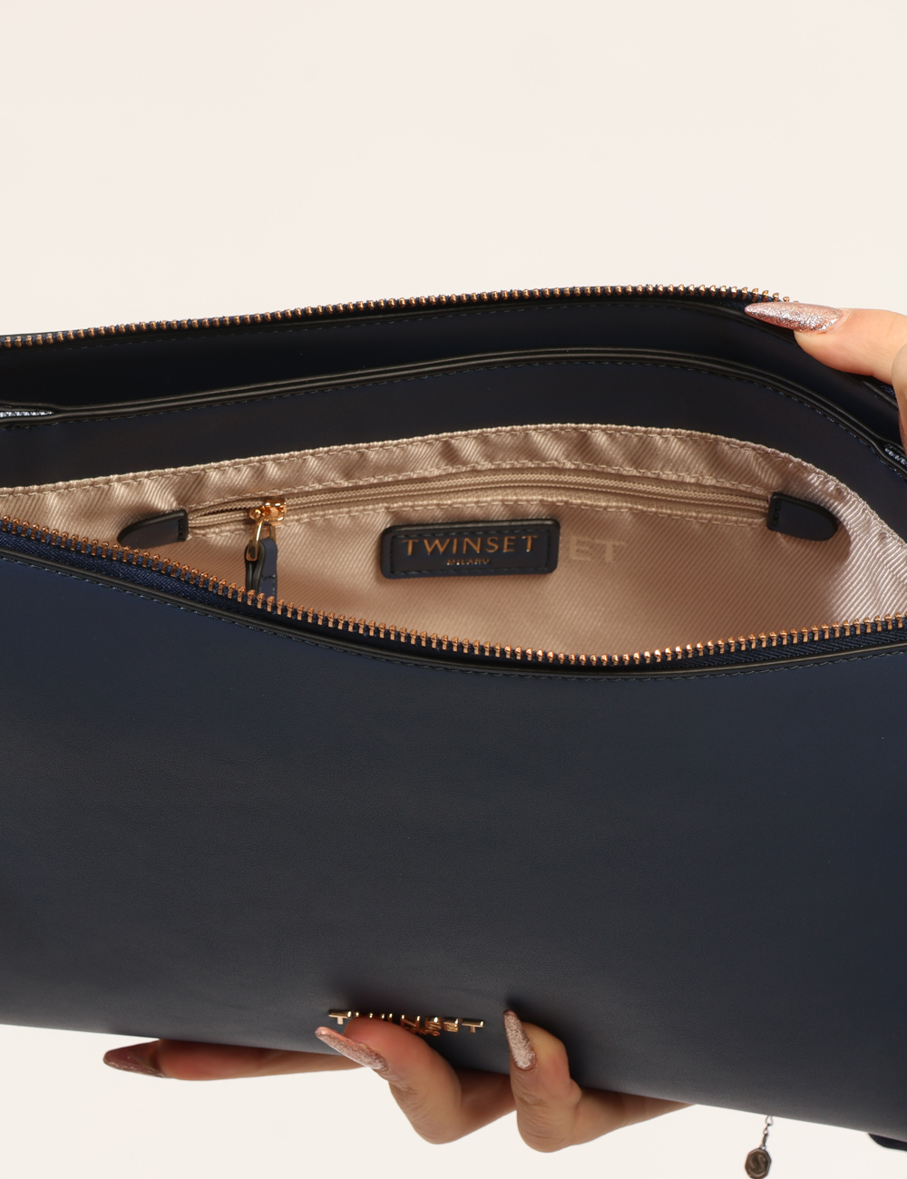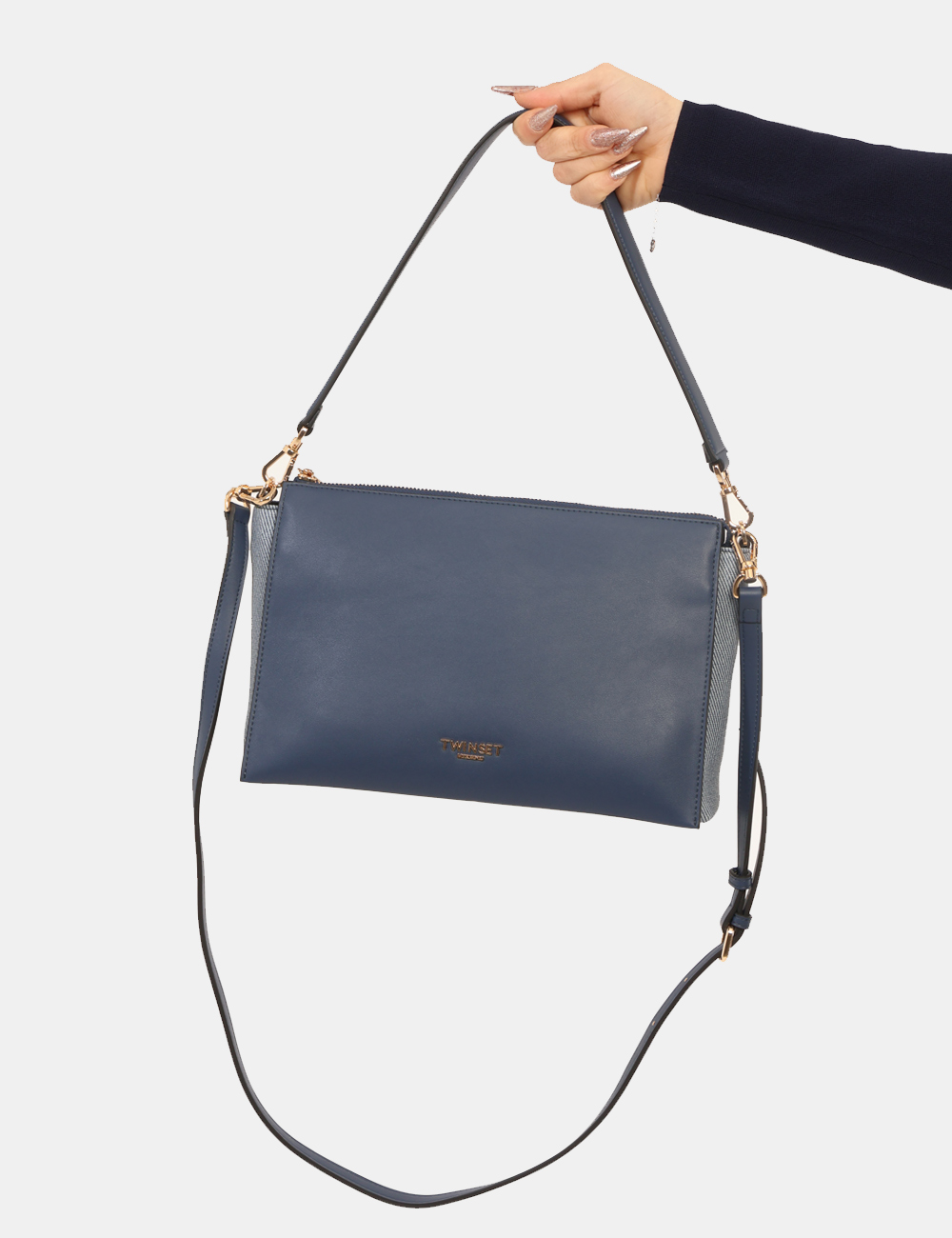 La Borsa TWIN SET Blu è un accessorio elegante e versatile pensato per completare con stile i tuoi look della stagione più luminosa. Questa borsa da donna adatta alla stagione primavera estate si distingue per la sua tonalità blu intensa e raffinata, perfetta per aggiungere profondità e carattere agli outfit quotidiani. Il design moderno è arricchito da un inserto in tessuto e da dettagli dorati che donano luminosità e un tocco sofisticato al modello, rendendo questa borsa con inserto tessuto dettagli dorati un accessorio ricercato ma facile da indossare in diverse occasioni. Realizzata in 100% poliestere, offre leggerezza e resistenza, mantenendo una struttura pratica che accompagna con naturalezza la silhouette. Le dimensioni equilibrate permettono di portare con te tutto l’essenziale per la giornata con comodità: base inferiore 30 cm, altezza massima 20 cm e profondità 10 cm. La borsa risulta quindi capiente ma allo stesso tempo elegante, ideale per accompagnarti nelle attività quotidiane. La Borsa TWIN SET Blu è perfetta da indossare nel tempo libero durante le giornate primaverili ed estive, per una passeggiata in città, un pomeriggio di shopping o un aperitivo con le amiche. Puoi abbinarla facilmente a jeans e sneakers per un look casual moderno oppure a un vestito leggero per uno stile più femminile e raffinato. Versatile e contemporanea, rappresenta un accessorio ideale per completare il tuo guardaroba con un dettaglio di stile nella stagione più calda. Tutti i prodotti disponibili su SecondaStrada.com sono originali e accuratamente selezionati. Codice articolo 261TD8035 DP CA.
