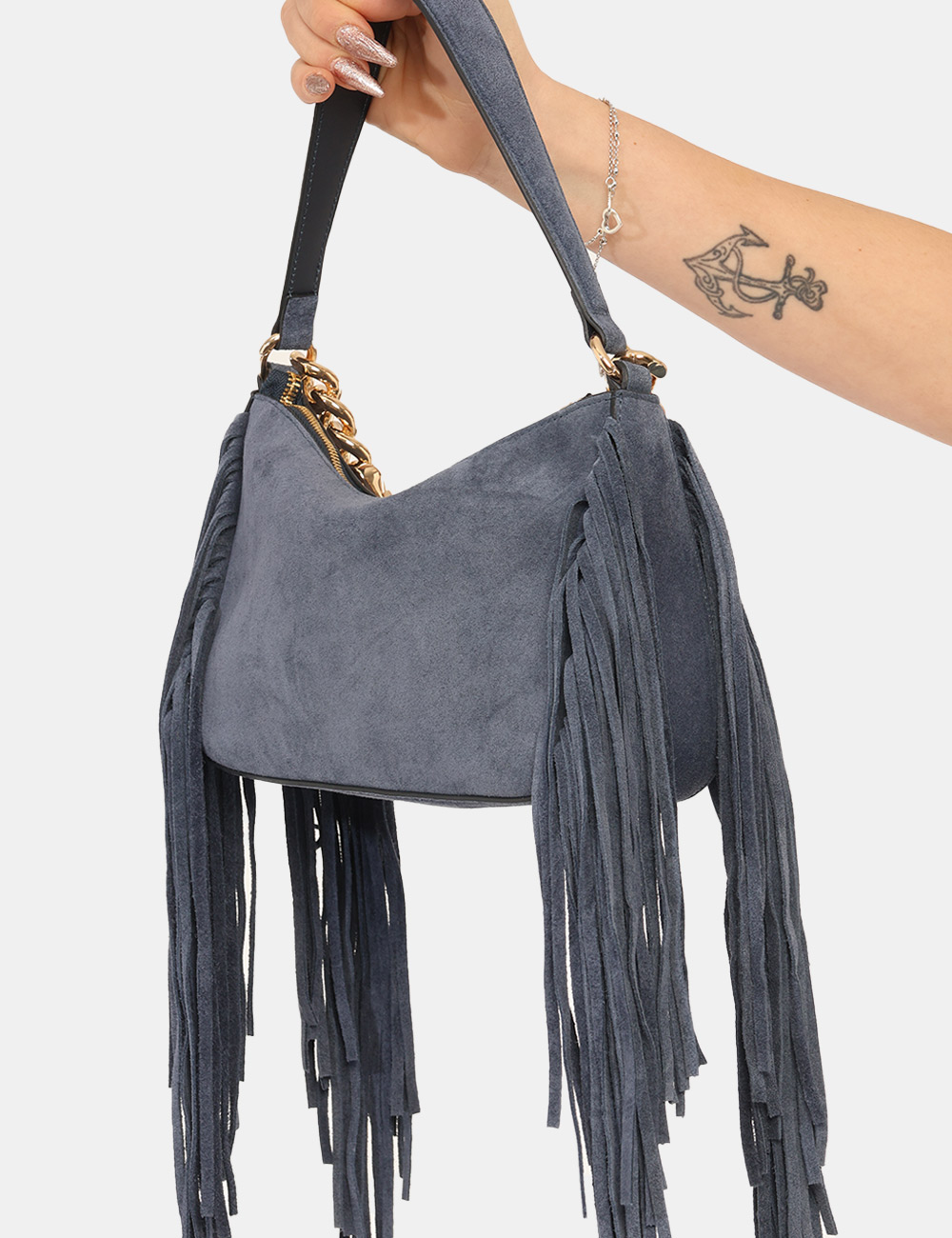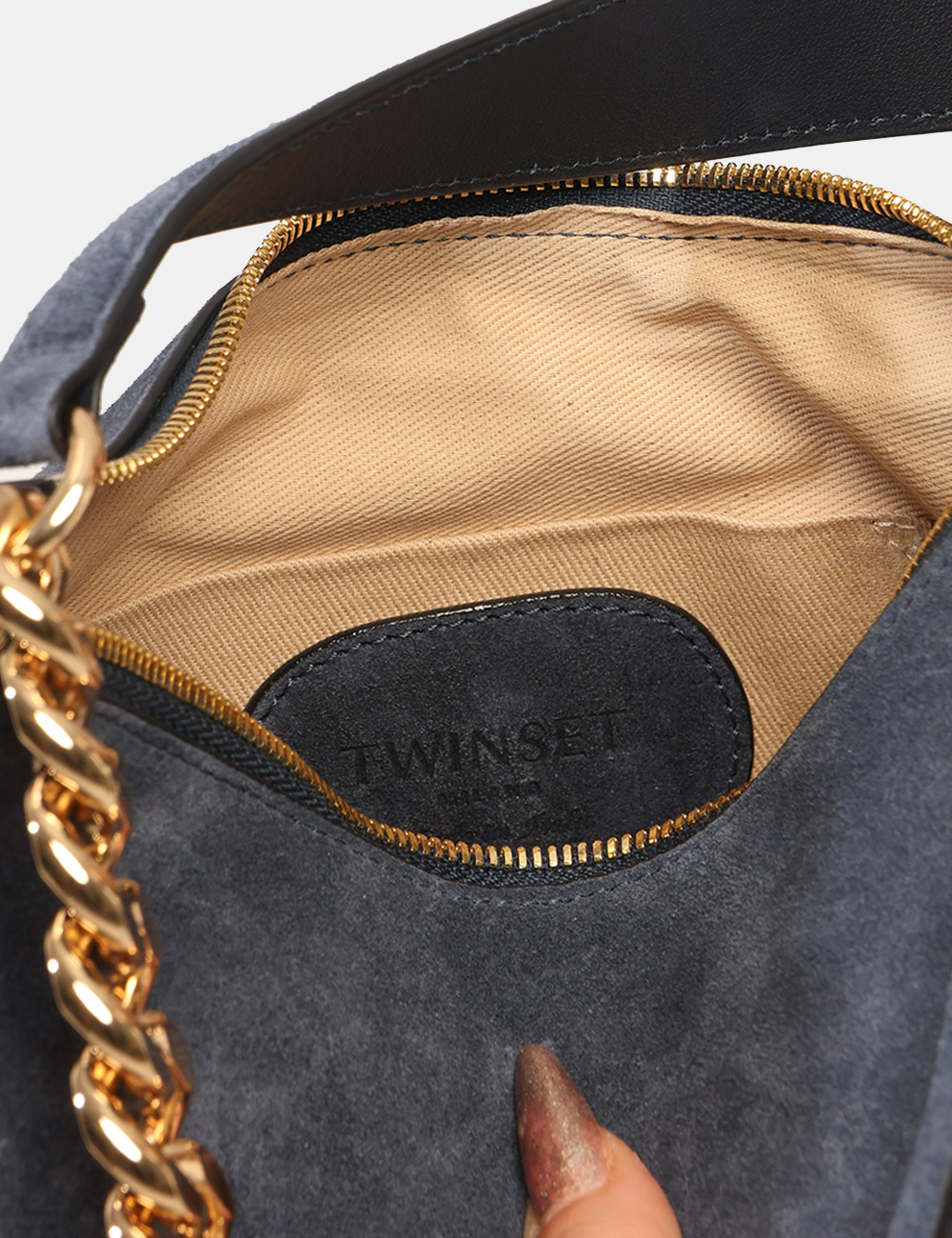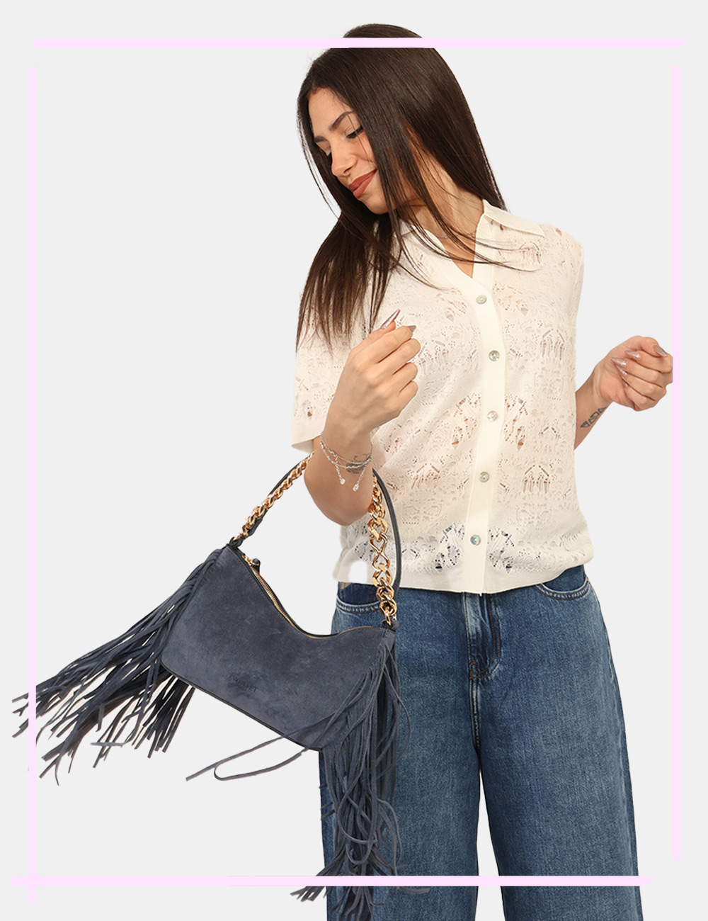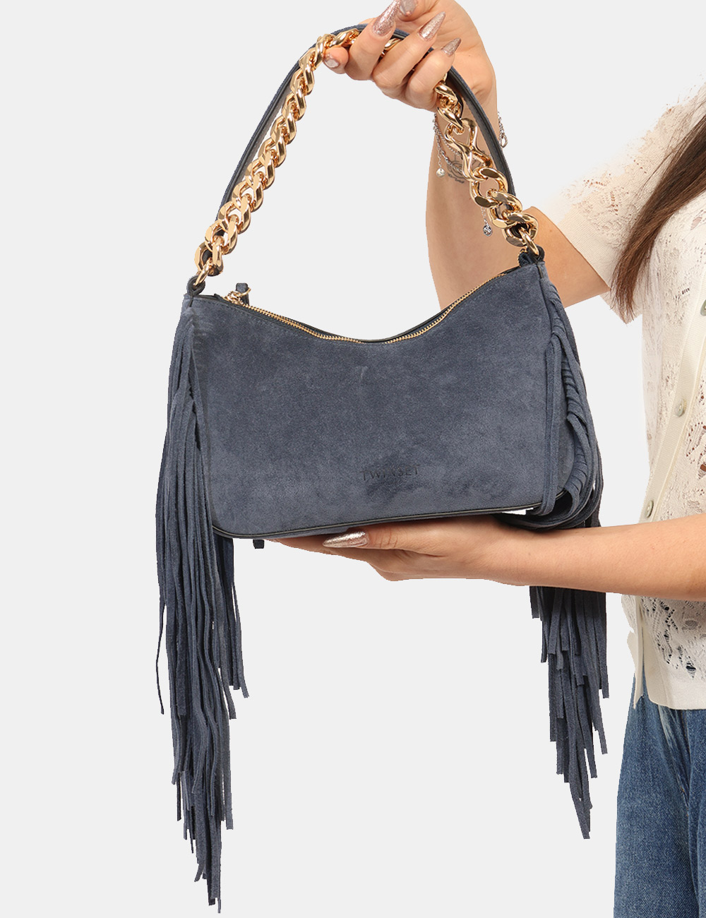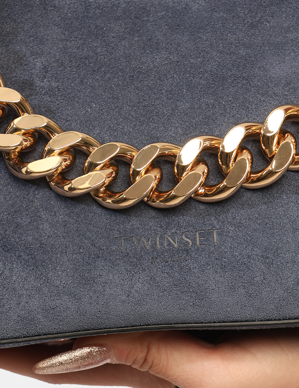 La Borsa TWIN SET Blu è un accessorio elegante e ricercato pensato per completare con personalità i look della stagione più luminosa dell’anno. Questa borsa da donna adatta alla stagione primavera estate si distingue per la sua tonalità blu intensa e sofisticata, perfetta per aggiungere profondità e carattere agli outfit quotidiani. Il design è arricchito da una catena dorata e da delicate frange decorative che donano movimento e un tocco glamour, rendendo questa borsa con catena dorata e frange un accessorio distintivo e contemporaneo. Realizzata in 65% poliestere e 35% cotone, unisce leggerezza e resistenza, offrendo una struttura compatta ma funzionale ideale per accompagnarti nelle attività quotidiane. Le dimensioni equilibrate, base inferiore 28 cm, altezza massima 16 cm e profondità 7 cm, permettono di portare con te gli oggetti essenziali mantenendo una linea elegante e pratica. La Borsa TWIN SET Blu è perfetta da indossare sia di giorno che di sera, ad esempio durante una passeggiata in città, un aperitivo con le amiche o una cena informale nelle serate primaverili ed estive. Puoi abbinarla facilmente a un completo leggero per un look curato e sofisticato oppure a un semplice vestito estivo per uno stile femminile e fresco. Versatile e raffinata, è una scelta ideale per valorizzare il guardaroba della stagione primavera estate con un accessorio di carattere. Tutti i prodotti disponibili su SecondaStrada.com sono originali e accuratamente selezionati. Codice articolo 261TB7084 DP CA.