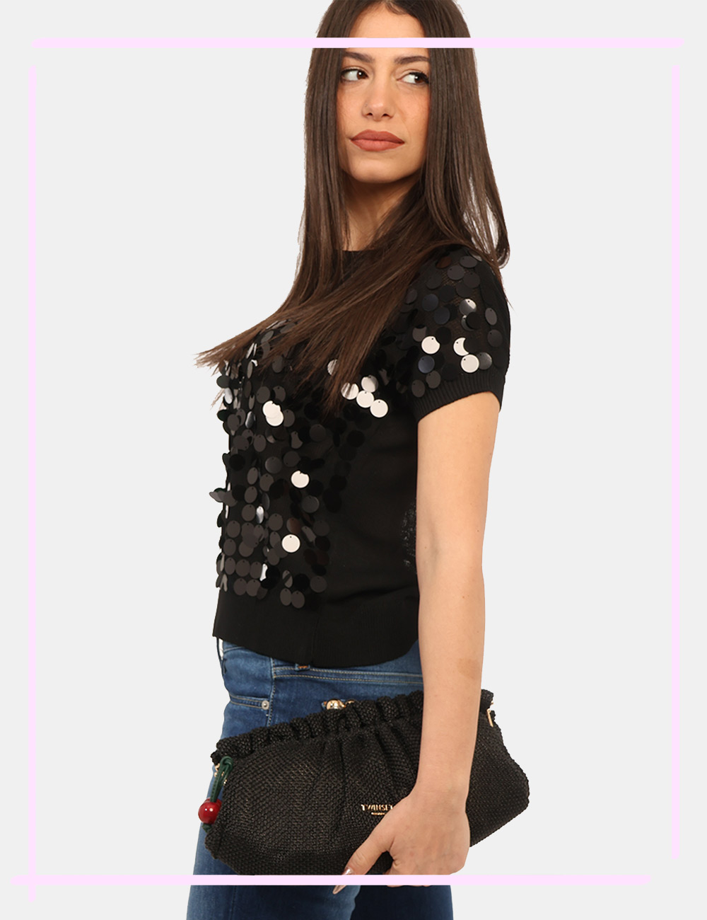 La Borsa TWIN SET Nera è un accessorio elegante e sofisticato pensato per completare con stile i tuoi look della stagione più luminosa. Questa borsa da donna adatta alla stagione primavera estate si distingue per la sua tonalità nera intensa e versatile, una scelta intramontabile che permette di creare outfit raffinati e facili da abbinare. Il design è impreziosito da un ciondolo con perle e da una chiusura in metallo che donano luminosità e un tocco di femminilità al modello, rendendo questa borsa con ciondolo con perle e chiusura in metallo un accessorio ricercato e distintivo. Realizzata in 100% poliuretano, offre leggerezza e resistenza, mantenendo una struttura pratica che accompagna con eleganza la silhouette. Le dimensioni equilibrate permettono di portare con te tutto l’essenziale con comodità: base inferiore 33 cm, altezza massima 18 cm e profondità 8 cm. La borsa risulta quindi capiente ma allo stesso tempo compatta, perfetta per organizzare gli oggetti personali senza rinunciare allo stile. La Borsa TWIN SET Nera è ideale da indossare sia di giorno che di sera, ad esempio per una passeggiata in città, un aperitivo con le amiche o una cena informale durante le serate primaverili ed estive. Puoi abbinarla facilmente a un vestito elegante per un look femminile e sofisticato, oppure a un completo moderno per uno stile più deciso e contemporaneo. Versatile e raffinata, rappresenta un accessorio perfetto per completare il tuo guardaroba con un dettaglio di carattere nella stagione primavera estate. Tutti i prodotti disponibili su SecondaStrada.com sono originali e accuratamente selezionati. Codice articolo 261TD8280 DP CA.