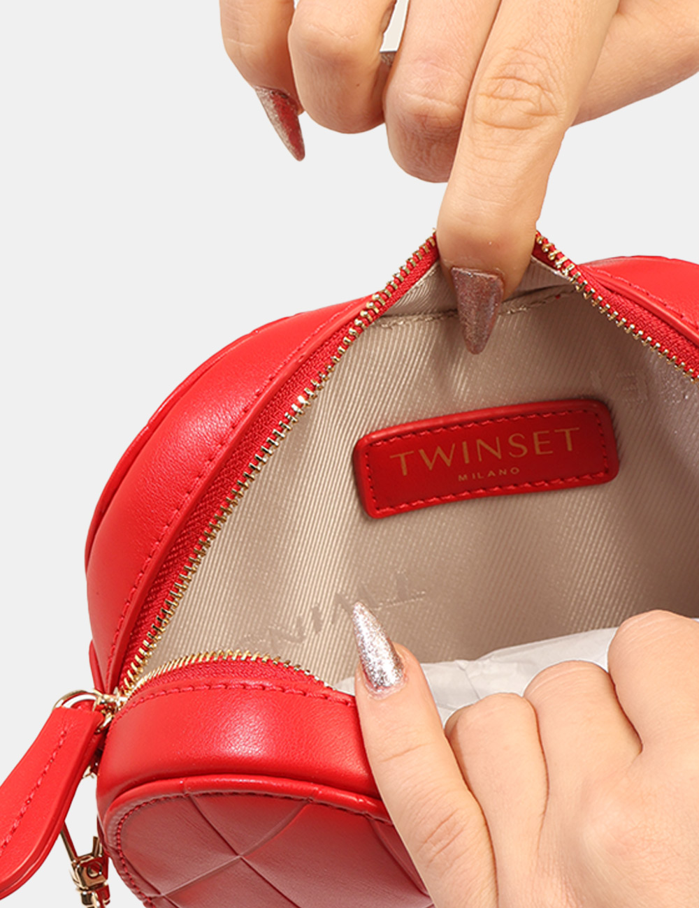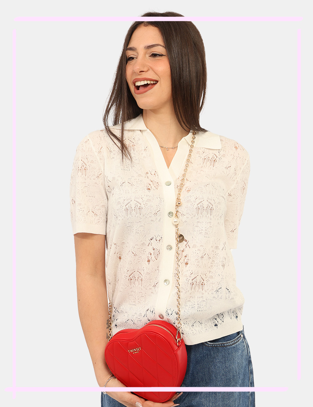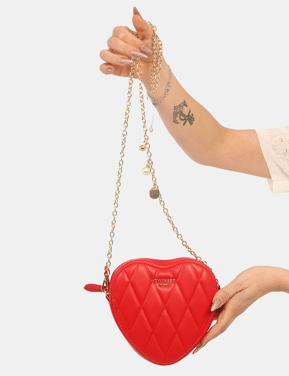 La Borsa TWIN SET Rossa è un accessorio audace e romantico pensato per aggiungere un tocco di personalità ai tuoi look della stagione più luminosa. Questa borsa da donna adatta alla stagione primavera estate si distingue per la sua tonalità rossa intensa e femminile, perfetta per dare carattere agli outfit e valorizzare anche i look più semplici. Il design originale è caratterizzato da una particolare forma a cuore e da una elegante catena dorata che dona luminosità e raffinatezza al modello, rendendo questa borsa con forma a cuore catena dorata un accessorio iconico e ricercato. Realizzata in 100% poliuretano, garantisce leggerezza e resistenza mantenendo una struttura compatta e pratica. Le dimensioni contenute la rendono perfetta per portare con te gli oggetti essenziali senza rinunciare allo stile: base inferiore 10 cm, altezza massima 17 cm e profondità 5 cm. La forma particolare e la tracolla a catena permettono di indossarla comodamente a spalla o crossbody, rendendola un accessorio versatile e distintivo. La Borsa TWIN SET Rossa è perfetta da indossare nel tempo libero durante le giornate primaverili ed estive, per una passeggiata in città, un aperitivo con le amiche o una serata speciale. Puoi abbinarla facilmente a un vestito elegante per un look romantico e femminile oppure a un completo moderno per creare un contrasto sofisticato e di carattere. Originale e raffinata, rappresenta l’accessorio ideale per completare il tuo guardaroba della stagione primavera estate con un dettaglio di stile unico. Tutti i prodotti disponibili su SecondaStrada.com sono originali e accuratamente selezionati. Codice articolo 261TH7034 DP CA.