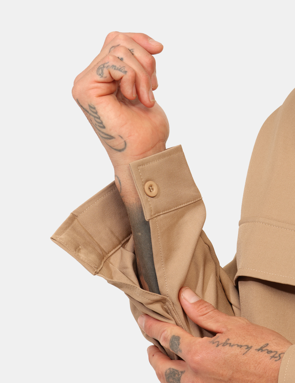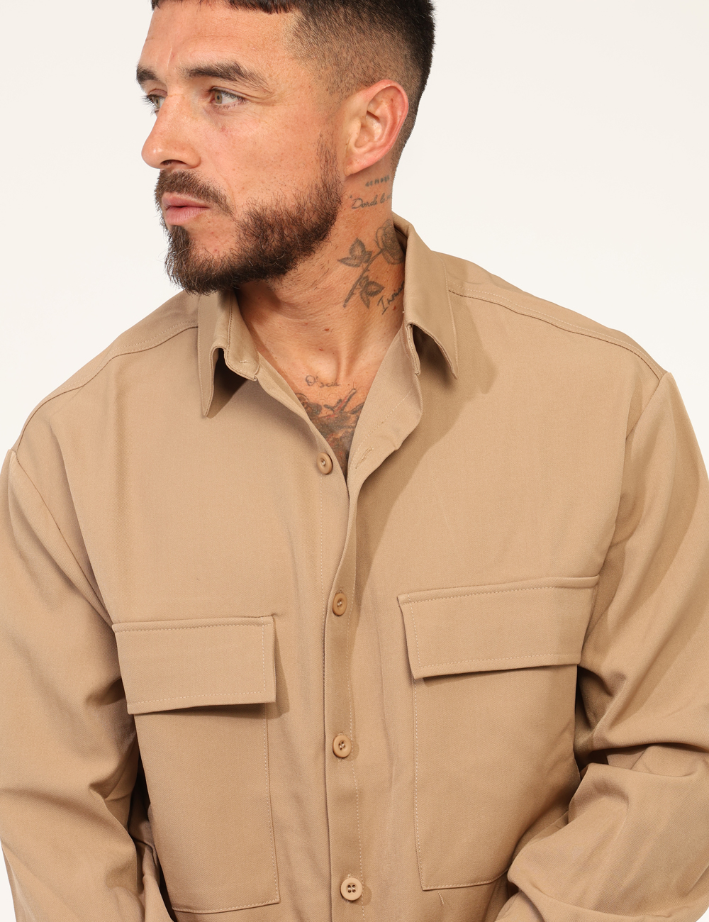 Camicia raffinata in total marrone cammello, con taschini a toppa. La vestibilità è morbida e pratica grazie a bottoni ad asola in tinta. La camicia è adatta per occasioni casual ed eleganti, perfettamente combinabile con i pantaloni in tinta per un completo ideale. Affronta il tuo inverno con stile.
