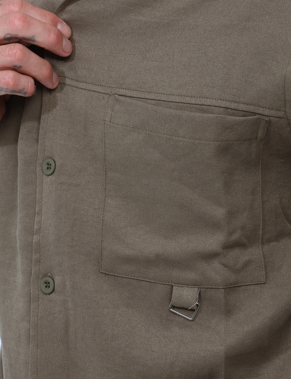 Questa camicia da uomo adatta alla primavera estate si distingue per il suo design essenziale ma ricercato. I tasconi frontali aggiungono un dettaglio pratico e di tendenza, valorizzando il capo con un tocco utility che lo rende ancora più versatile. La vestibilità regolare, come indossata dal modello alto 187 cm con taglia L, garantisce una linea comoda e naturale, adatta a ogni occasione.