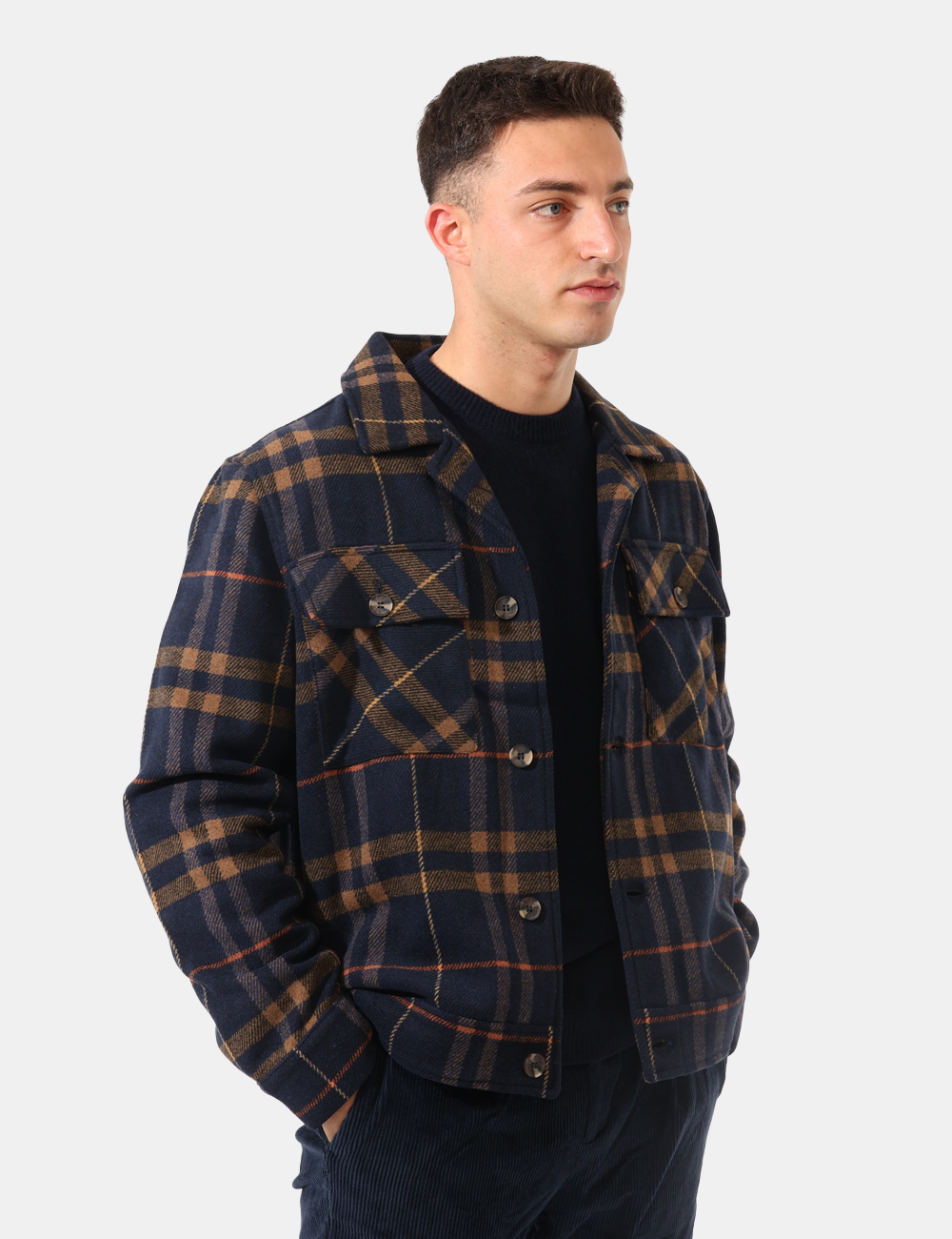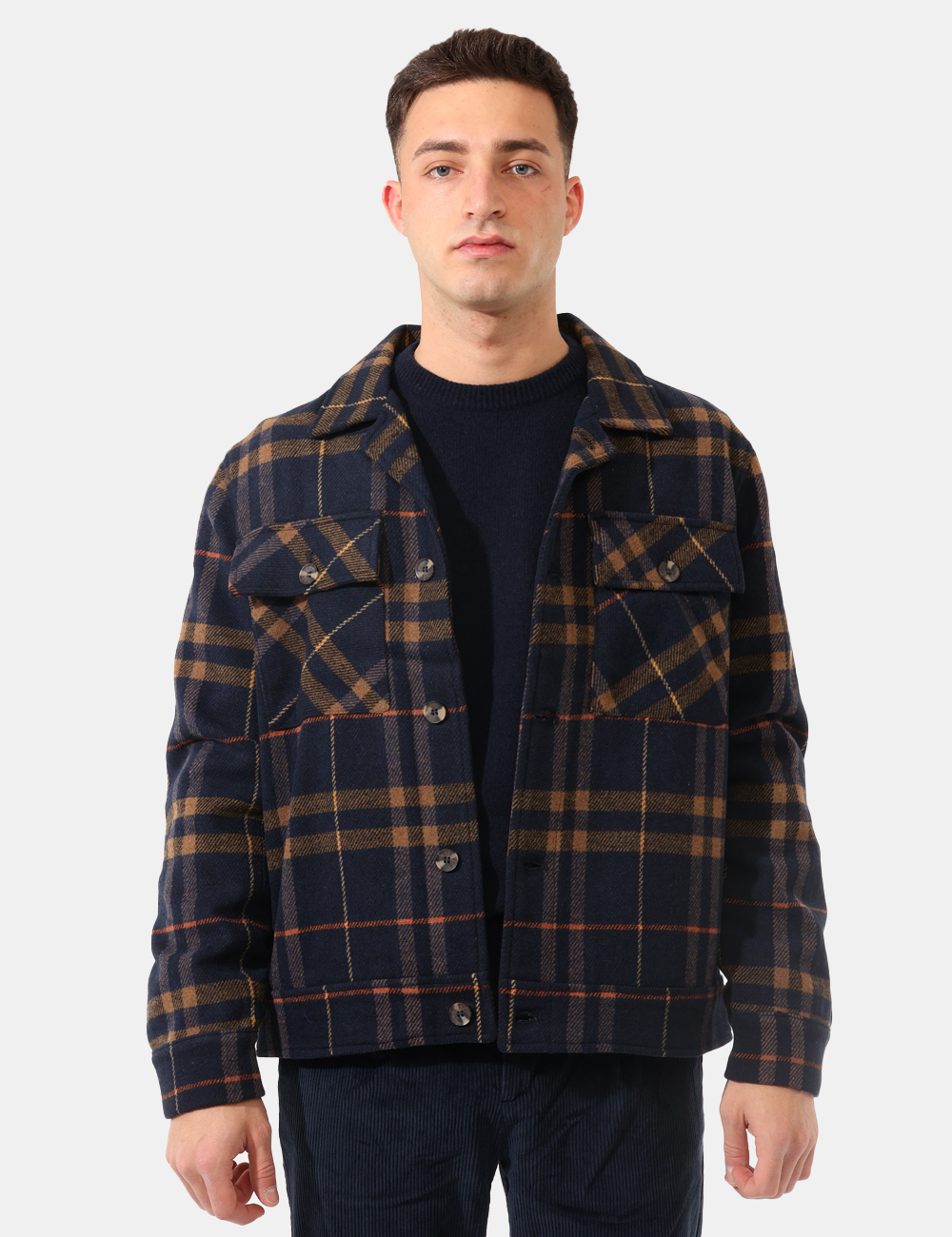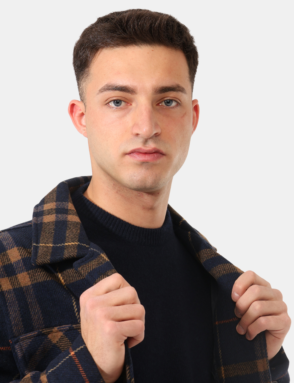 Camicia in misto lana, in total blu e beige con taschini a toppa. La vestibilità è morbida e pratica grazie a bottoni ad asola in tinta. La camicia è adatta per occasioni casual e facilmente combinabile. Affronta il tuo inverno con stile.