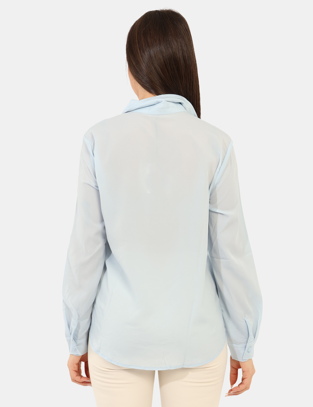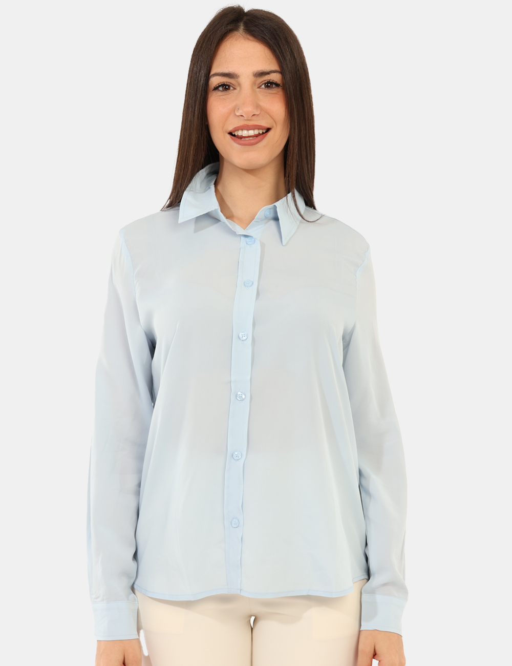 Camicia leggera in total azzurro. La vestibilità è morbida e pratica grazie a bottoni ad asola in tinta, la camicia è adatta per occasioni casual/raffinate, ideale con un blazer o con un maglioncino. Dona un tocco di stile ai tuoi outfit.