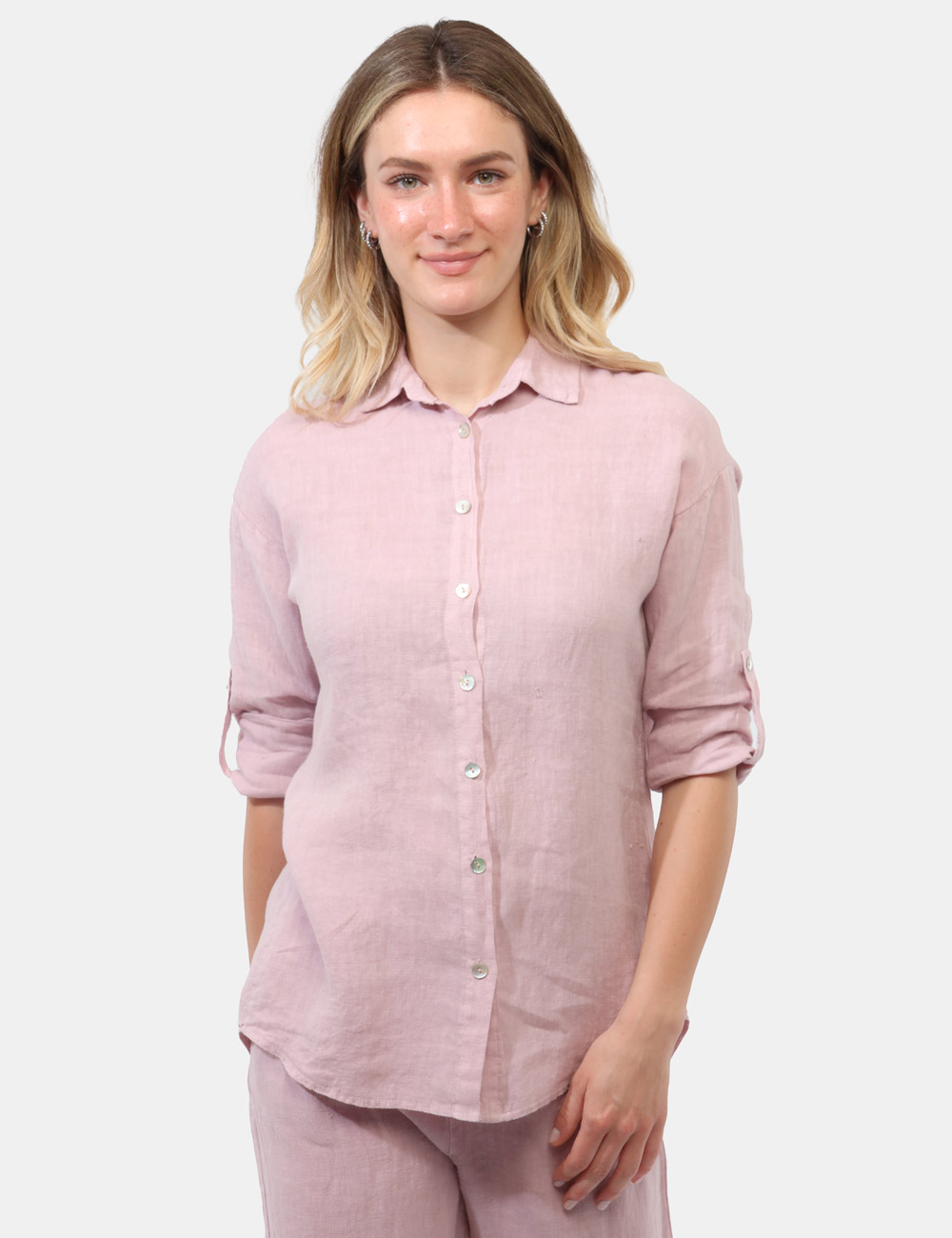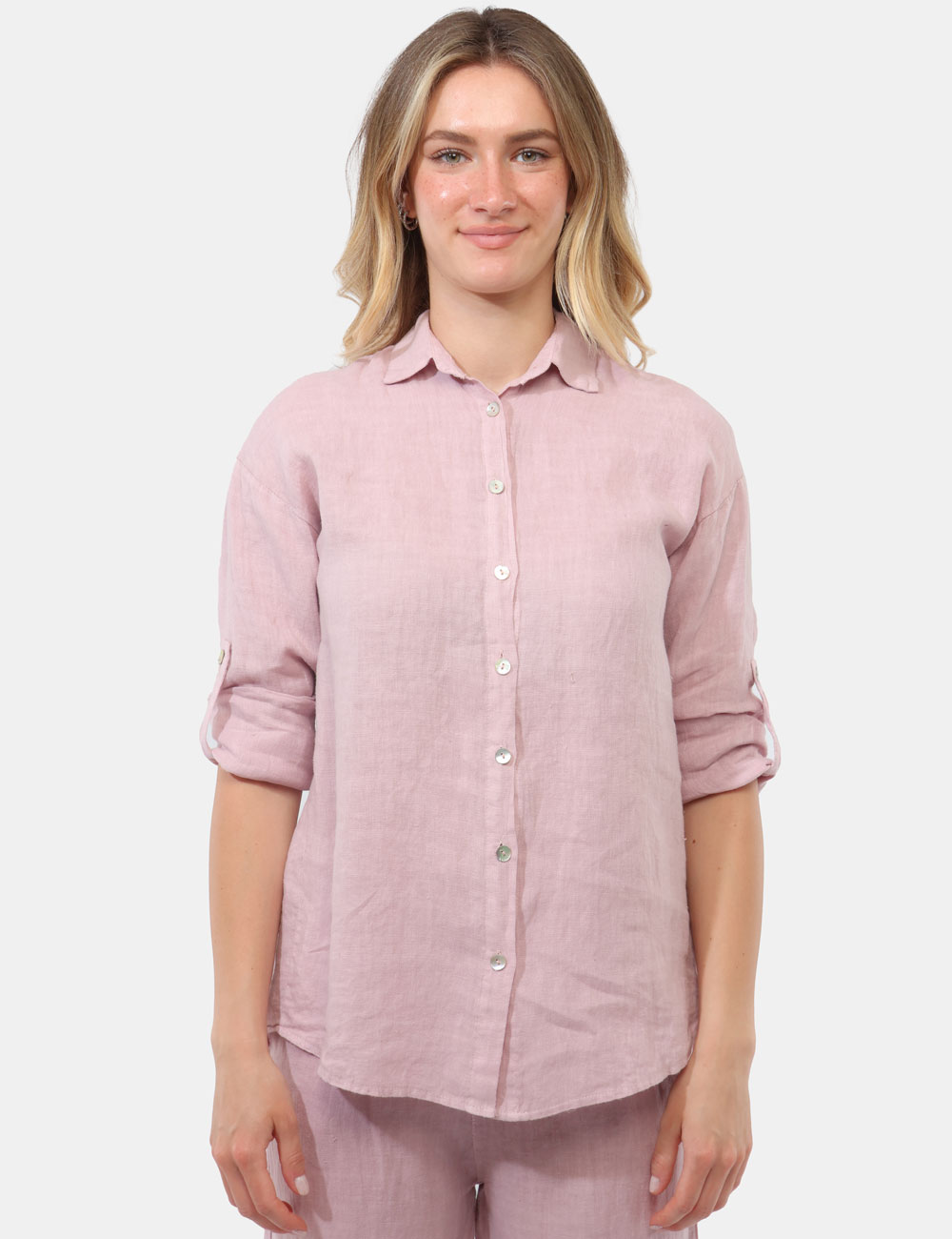 Delicata e luminosa, la Camicia RUE DE CLERIE Rosa è il capo ideale per chi ama uno stile femminile e naturale. Realizzata in 100% lino, offre freschezza e traspirabilità, rendendola perfetta per affrontare con comfort le giornate più calde della stagione.