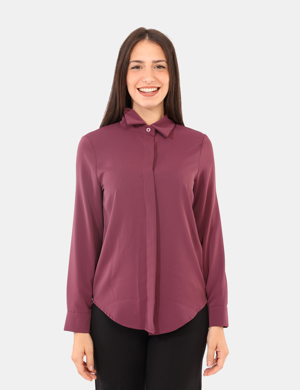 Camicia classica in total viola prugna. La vestibilità è morbida e pratica grazie a bottoni ad asola in tinta. La camicia è adatta per occasioni casual/raffinate e facilmente combinabile. Dona un tocco di stile ai tuoi ooutfit.