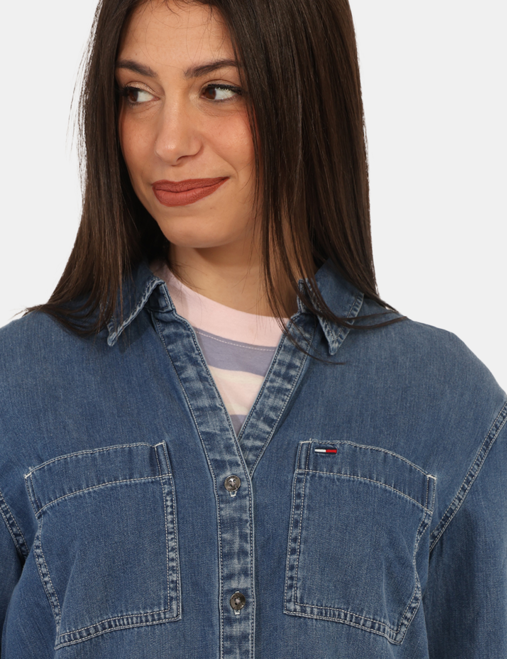 La Camicia TOMMY HILFIGER Blu da donna è un capo versatile e contemporaneo, perfetto per chi desidera uno stile casual ma sempre curato. Realizzata in un morbido tessuto composto da 76% cotone e 24% lyocell, questa camicia offre una piacevole sensazione di leggerezza e comfort sulla pelle. Il design è caratterizzato da una camicia con tessuto denim, taschino a toppa, bottoni ad asola, dettagli che richiamano l’estetica iconica del denim e donano al capo un look moderno e dinamico. Questa camicia da donna adatta alla stagione primavera estate è ideale per accompagnarti durante le giornate più miti, quando cerchi un capo pratico ma allo stesso tempo raffinato. La vestibilità regolare valorizza la silhouette senza risultare troppo aderente, rendendo la camicia facile da indossare e perfetta per diversi tipi di outfit. La modella è alta 165 cm e indossa la taglia S, un riferimento utile per scegliere la misura più adatta. Puoi indossarla nel tempo libero, durante una giornata in città o in occasioni casual, quando desideri un look semplice ma sempre attuale. Per un outfit disinvolto puoi abbinarla a jeans e sneakers per uno stile urbano e rilassato, oppure scegliere pantaloni chiari e sandali per un look primaverile fresco e femminile. Grazie al suo stile denim intramontabile e al design curato nei dettagli, questa camicia è un capo facile da abbinare e perfetto per arricchire il tuo guardaroba di stagione. Su SecondaStrada.com trovi solo prodotti originali selezionati con attenzione. Questo modello Tommy Hilfiger è autentico ed è identificato dal codice articolo DW0DW22007 OB.