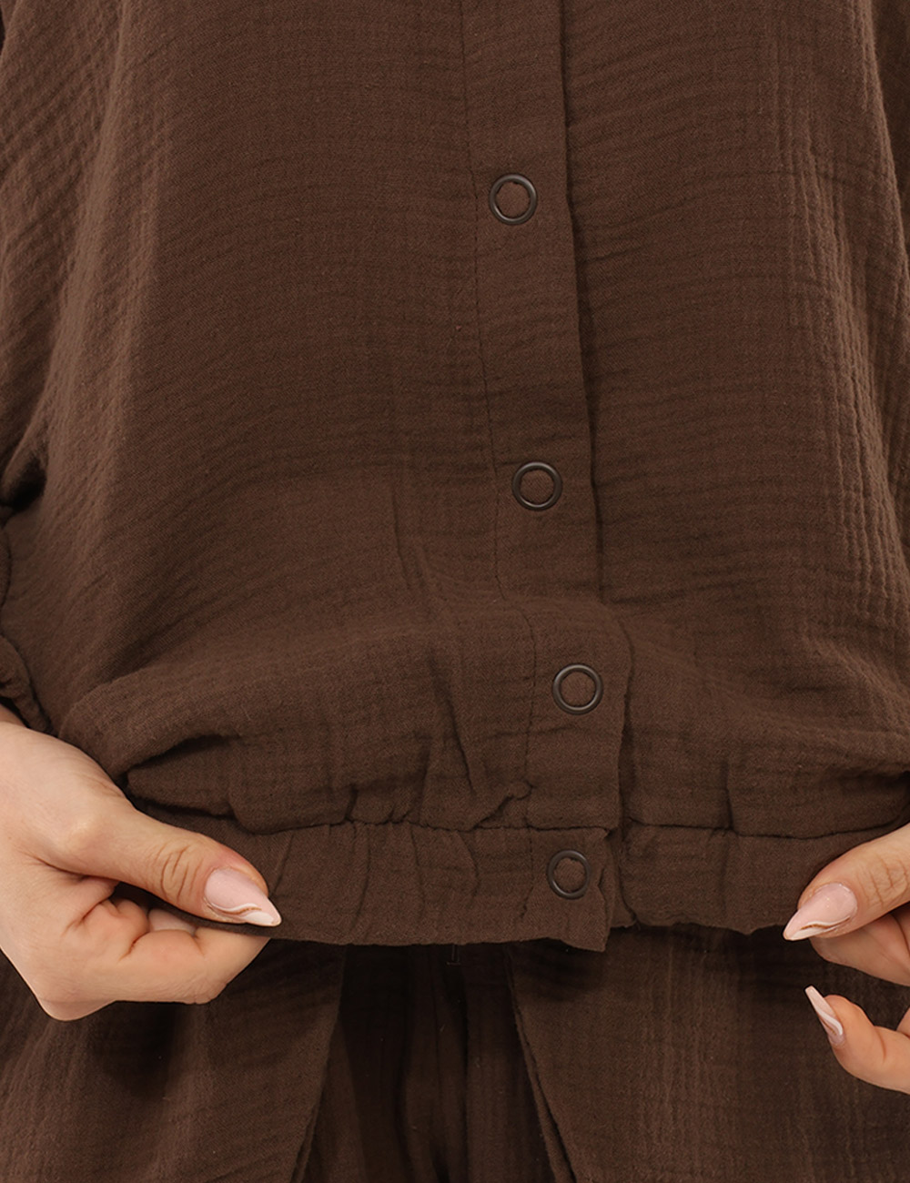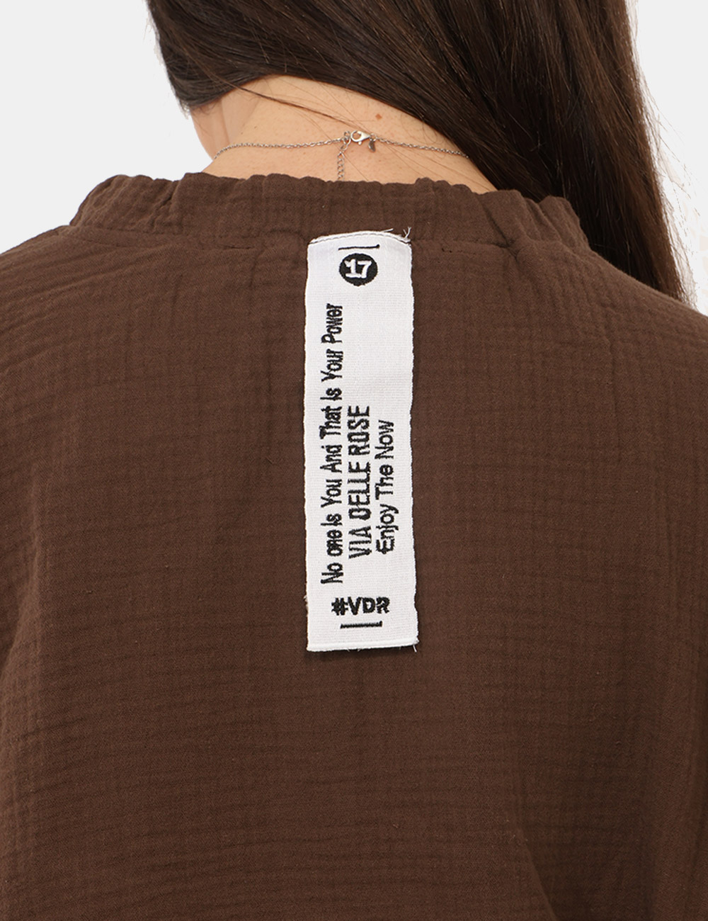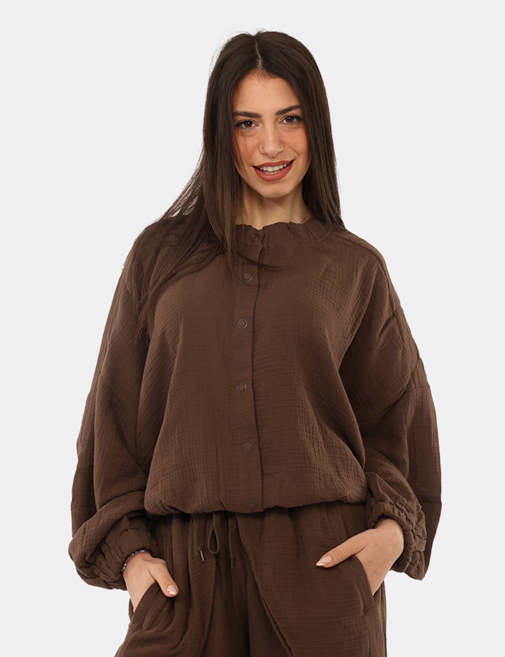 La Camicia VIA DELLE ROSE Marrone è il capo ideale per chi desidera un look femminile, moderno e confortevole durante la stagione più calda. Questa camicia da donna primavera estate unisce praticità e stile in un design contemporaneo pensato per accompagnarti nelle giornate più dinamiche con naturalezza. Il colore marrone dona carattere ed eleganza al capo, rendendolo perfetto per creare outfit versatili e raffinati adatti sia al tempo libero sia a momenti più casual chic. Realizzata in 100% cotone, garantisce leggerezza, traspirabilità e una piacevole sensazione sulla pelle, qualità ideali per affrontare le giornate primaverili ed estive con il massimo comfort. Il design è valorizzato da dettagli che rendono il capo distintivo e femminile: si tratta infatti di una camicia con collo rontondo , elastico in vita e sui polsini, elementi che definiscono la silhouette e donano movimento al modello creando un effetto morbido e contemporaneo. La vestibilità regolare permette di indossarla con facilità e di abbinarla a diversi capi del guardaroba. La Camicia VIA DELLE ROSE Marrone è perfetta da indossare nel tempo libero, durante una passeggiata in città o per una giornata estiva quando desideri un outfit comodo ma curato. Puoi abbinarla facilmente con i suoi pantaloni abbinati per creare un completo coordinato e moderno, oppure indossarla con jeans e sandali per uno stile casual e femminile. La modella è alta 165 cm e veste la taglia S; la vestibilità del capo è regolare. Su SecondaStrada.com trovi solo prodotti originali e accuratamente selezionati. Codice articolo: VS25 17189 SB.