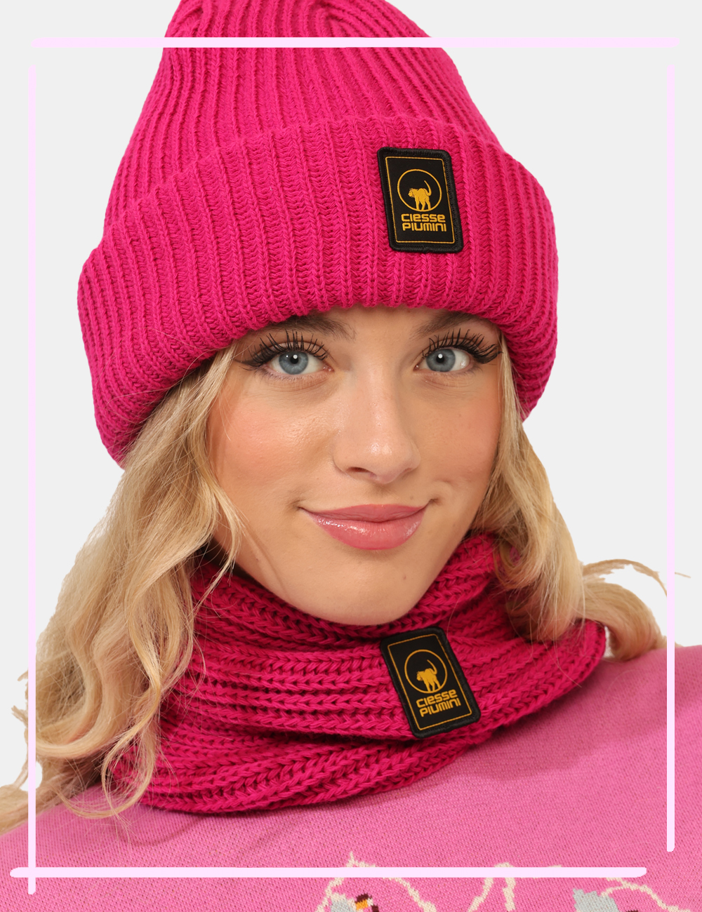 Completo cappello più sciarpa in total tortora con filo lurex più logo brand. La vestibilità è morbida e pratica. Il completo è ideale per affrontare l’inverno con stile.