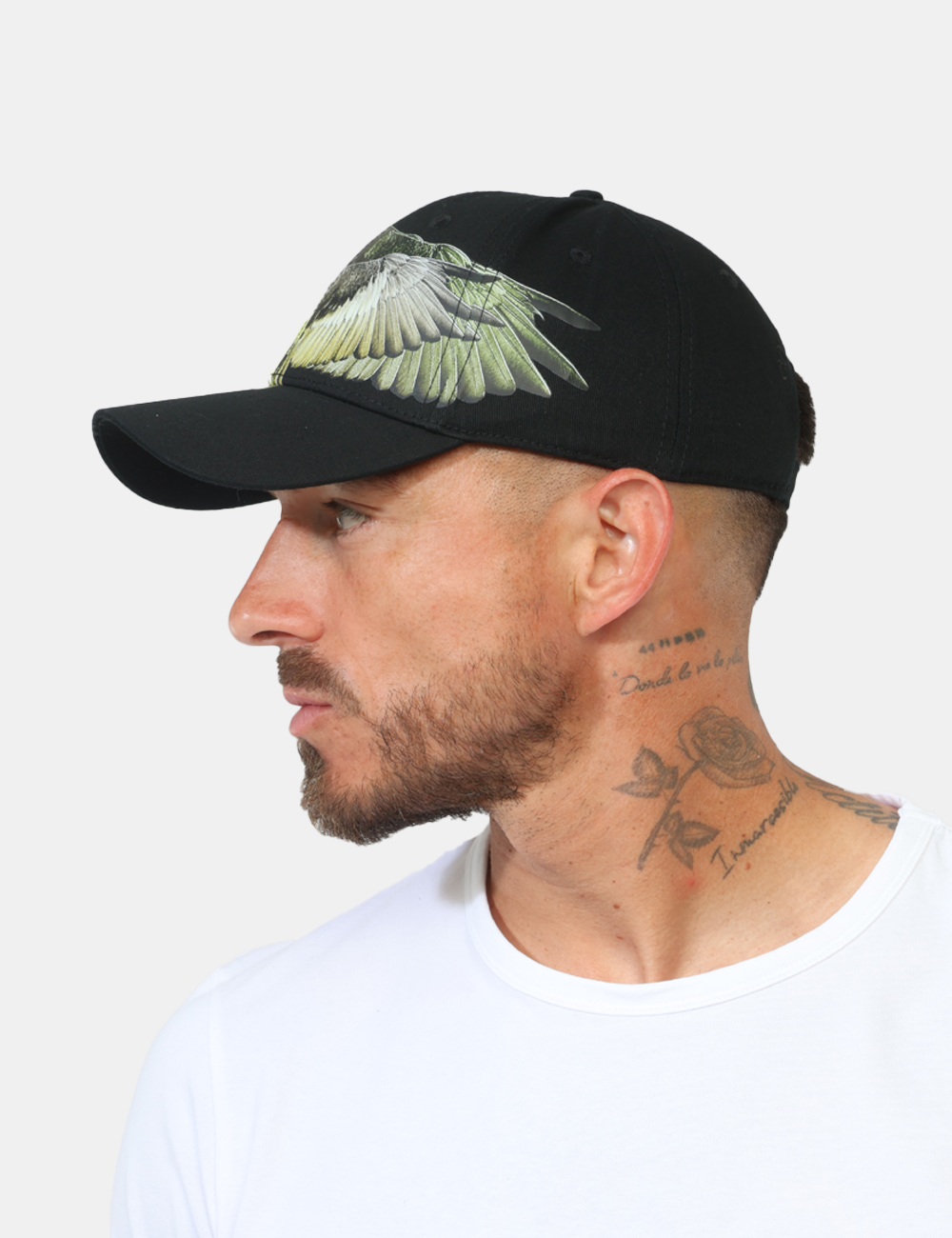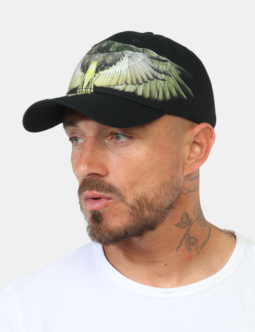 Perfetto da indossare nel tempo libero, durante una giornata all’aperto o per completare un look urbano, questo cappello con stampa ali si abbina facilmente a un outfit sportivo con tuta e sneakers, oppure a jeans e t-shirt per uno stile casual e dinamico.