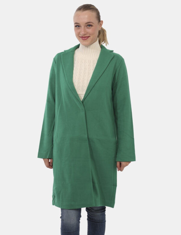 Cappotto lungo in total verde brillante. La vestibilità è morbida e pratica grazie a bottone automatico. Il cappotto è adatto per occasioni casual/eleganti. Dai un tocco di stile ai tuoi outfit.
