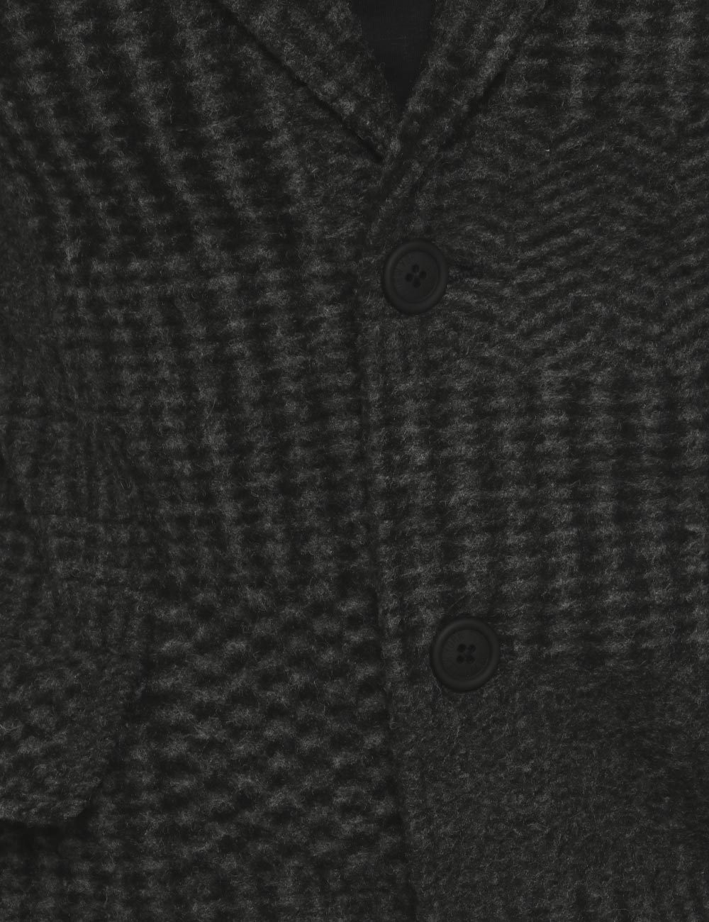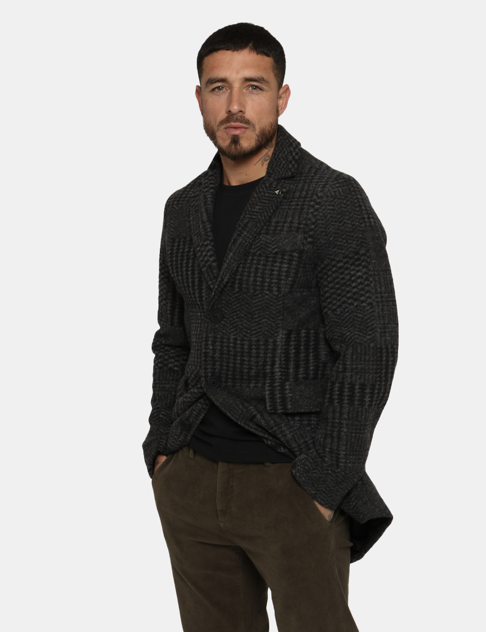 Cappotto classico in simil in total grigio e nero. Presenti fake tasche a toppa più spilletta con logo brand. La vestibilità è morbida e pratica grazie a bottoni ad asola in tinta. Il cappotto è adatto per occasioni casual e facilmente combinabile per ogni tipo di outfit. Indossalo per un inverno very cool.